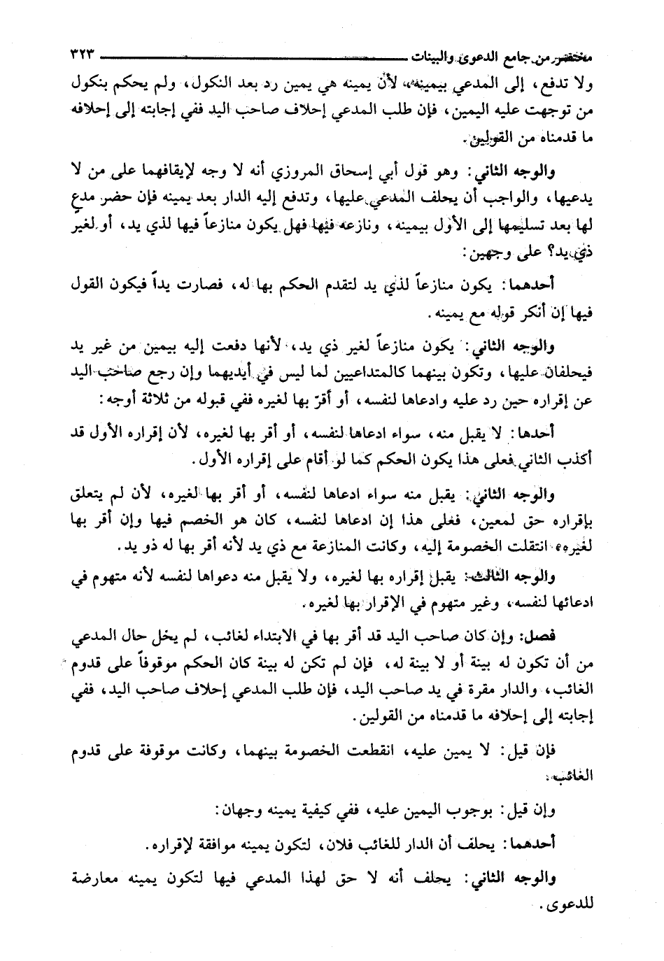 : وَإِنْ كَانَ صَاحِبُ الْيَدِ قَدْ أَقَرَّ بِهَا فِي الِابْتِدَاءِ لِغَائِبٍ، لَمْ يَخْلُ حَالُ الْمُدَّعِي مِنْ أَنْ تَكُونَ لَهُ بَيِّنَةٌ أَوْ لَا بَيِّنَةَ لَهُ، فَإِنْ لَمْ تَكُنْ لَهُ بَيِّنَةٌ كَانَ الْحُكْمُ مَوْقُوفًا عَلَى قُدُومِ الْغَائِبِ، وَالدَّارُ مُقَرَّةٌ فِي يَدِ صَاحِبِ الْيَدِ، فَإِنْ طَلَبَ الْمُدَّعِي إِحْلَافَ صَاحِبِ الْيَدِ، فَفِي إِجَابَتِهِ إِلَى إِحْلَافِهِ مَا قَدَّمْنَاهُ مِنَ الْقَوْلَيْنِ.