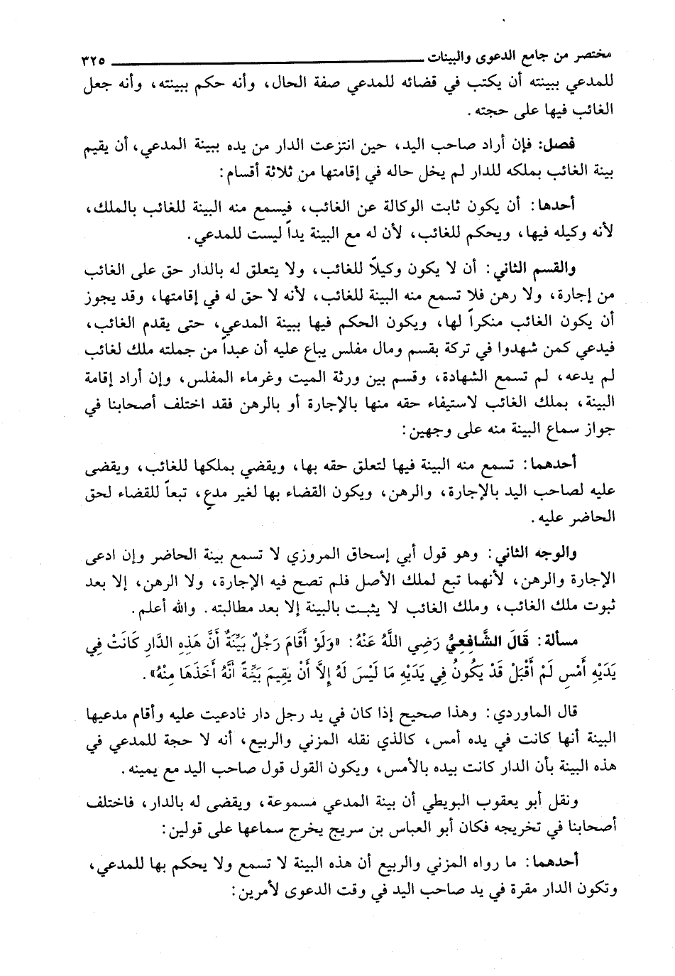 وَنَقَلَ أَبُو يَعْقُوبَ الْبَوِيطِيِّ إِنَّ بَيِّنَةَ الْمُدَّعِي مَسْمُوعَةٌ، وَيُقْضَى لَهُ بِالدَّارِ، فَاخْتَلَفَ أَصْحَابُنَا فِي تَخْرِيجِهِ فَكَانَ أَبُو الْعَبَّاسِ بْنُ سُرَيْجٍ يُخَرِّجُ سَمَاعَهَا عَلَى قَوْلَيْنِ: