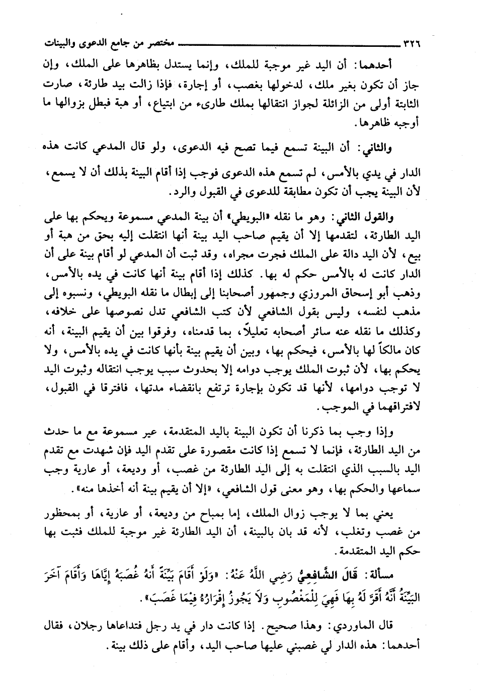 وَالْقَوْلُ الثَّانِي: وَهُوَ مَا نَقَلَهُ " الْبُوَيْطِيُّ " إِنَّ بَيِّنَةَ الْمُدَّعِي مَسْمُوعَةٌ وَيُحْكَمُ بِهَا عَلَى الْيَدِ الطَّارِئَةِ، لِتَقَدُّمِهَا إِلَّا أَنْ يُقِيمَ صَاحِبُ الْيَدِ بَيِّنَةً أَنَّهَا انْتَقَلَتْ إِلَيْهِ بِحَقٍّ مِنْ هِبَةٍ أَوْ بيع، لأنه الْيَدَ دَالَّةٌ عَلَى الْمِلْكِ فَجَرَتْ مَجْرَاهُ، وَقَدْ ثَبَتَ أَنَّ الْمُدَّعِيَ لَوْ أَقَامَ بَيِّنَةً عَلَى أَنَّ الدَّارَ كَانَتْ لَهُ بِالْأَمْسِ حُكِمَ لَهُ بِهَا. كَذَلِكَ إِذَا أَقَامَ بَيِّنَةً أَنَّهَا كَانَتْ فِي يَدِهِ بِالْأَمْسِ، وَذَهَبَ أَبُو إِسْحَاقَ الْمَرْوَزِيُّ وَجُمْهُورُ أَصْحَابِنَا إِلَى إِبْطَالِ مَا نَقَلَهُ الْبُوَيْطِيُّ، وَنَسَبُوهُ إِلَى مَذْهَبٍ لِنَفْسِهِ، وَلَيْسَ بِقَوْلِ الشَّافِعِيِّ لِأَنَّ كُتُبَ الشَّافِعِيِّ تَدُلُّ نُصُوصُهَا عَلَى خِلَافِهِ، وَكَذَلِكَ مَا نَقَلَهُ عَنْهُ سَائِرُ أَصْحَابِهِ تَعْلِيلًا، بِمَا قَدَّمْنَاهُ، وَفَرَّقُوا بَيْنَ أَنْ يُقِيمَ الْبَيِّنَةَ، أَنَّهُ كَانَ مَالِكًا لَهَا بِالْأَمْسِ، فَيُحْكَمُ بِهَا، وَبَيْنَ أَنْ يُقِيمَ بَيِّنَةً بِأَنَّهَا كَانَتْ فِي يَدِهِ بِالْأَمْسِ، وَلَا يُحْكَمُ بِهَا، لِأَنَّ ثُبُوتَ الْمِلْكِ يُوجِبُ دَوَامَهُ إِلَّا بِحُدُوثِ سَبَبٍ يُوجِبُ انْتِقَالَهُ وَثُبُوتُ الْيَدِ