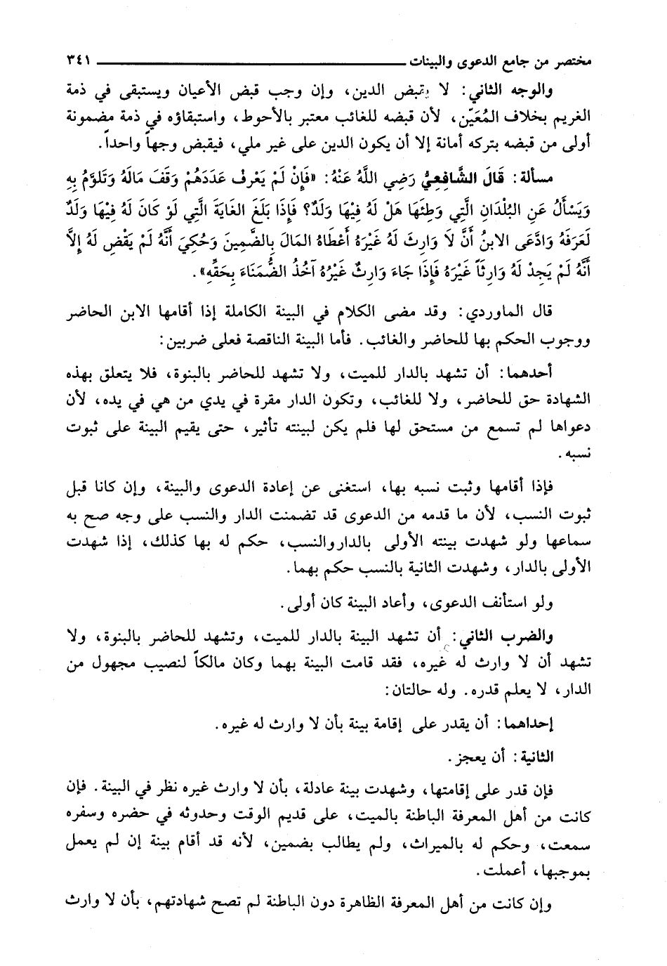 قَالَ الْمَاوَرْدِيُّ: وَقَدْ مَضَى الْكَلَامُ فِي الْبَيِّنَةِ الْكَامِلَةِ إِذَا أَقَامَهَا الِابْنُ الْحَاضِرُ وَوُجُوبُ الْحُكْمِ بِهَا لِلْحَاضِرِ وَالْغَائِبِ. فَأَمَّا الْبَيِّنَةُ النَّاقِصَةُ فَعَلَى ضَرْبَيْنِ: