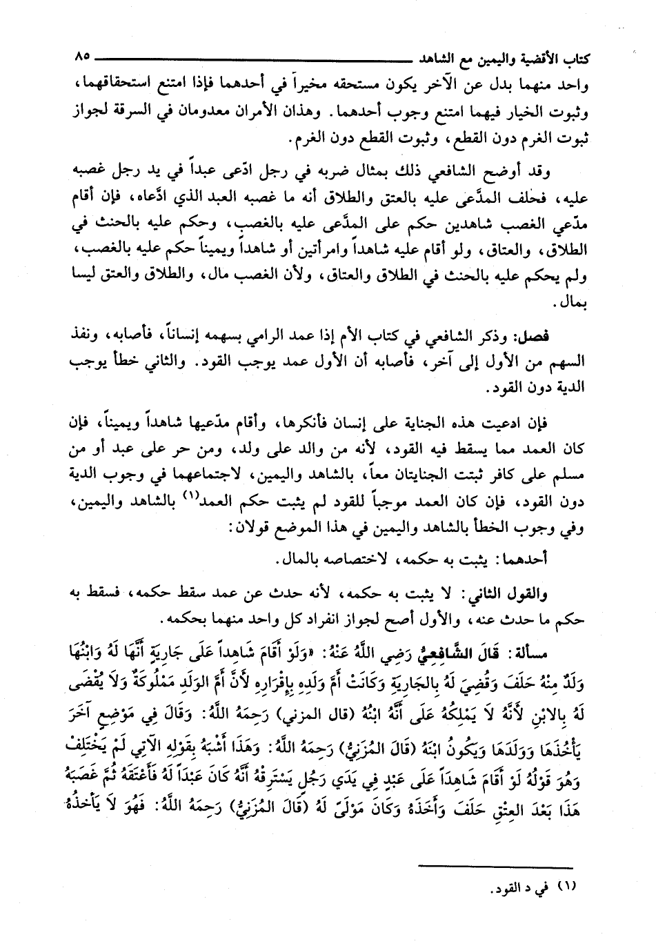 : قَالَ الشَّافِعِيُّ رَضِيَ اللَّهُ عَنْهُ: " وَلَوْ أَقَامَ شَاهِدًا عَلَى جَارِيَةٍ أَنَّهَا لَهُ وَابْنَهَا وَلَدٌ مِنْهُ حَلَفَ وَقُضِيَ لَهُ بِالْجَارِيَةِ وَكَانَتْ أُمَّ وَلَدِهِ بِإِقْرَارِهِ لِأَنَّ أُمَّ الْوَلَدِ مَمْلُوكَةٌ وَلَا يُقْضَى لَهُ بِالابْنِ لِأَنَّهُ لَا يَمْلِكُهُ عَلَى أَنَّهُ ابْنُهُ (قَالَ الْمُزَنِيُّ) رَحِمَهُ اللَّهُ: وَقَالَ فِي مَوْضِعٍ آخَرَ يَأْخُذُهَا وَوَلَدَهَا ويكون ابنه (قال المزني) رحمه الله: وهذا أشبه بقوله الآتي لَمْ يختلف وَهُوَ قَوْلُهُ لَوْ أَقَامَ شَاهِدًا عَلَى عَبْدٍ فِي يَدَيْ رَجُلٍ يَسْتَرِقُّهُ أَنَّهُ كَانَ عَبْدًا لَهُ فَأَعْتَقَهُ ثُمَّ غَصَبَهُ هَذَا بَعْدَ الْعِتْقِ حَلَفَ وَأَخَذَهُ وَكَانَ مَوْلًى لَهُ (قال المزني) رحمه الله: فهو لا يأخذه