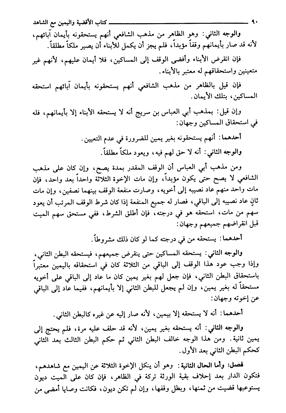 وَالْوَجْهُ الثَّانِي: إِنَّهُ يَسْتَحِقُّهُ بِغَيْرِ يَمِينٍ، لِأَنَّهُ قَدْ حَلَفَ عَلَيْهِ مَرَّةً، فَلَمْ يَحْتَجْ إِلَى يَمِينٍ ثَانِيَةٍ. وَمِنْ هَذَا الْوَجْهِ خَالَفَ الْبَطْنُ الثَّانِي ثُمَّ حُكْمُ الْبَطْنِ الثَّالِثِ بَعْدَ الثَّانِي كَحُكْمِ الْبَطْنِ الثَّانِي بَعْدَ الْأَوَّلِ.