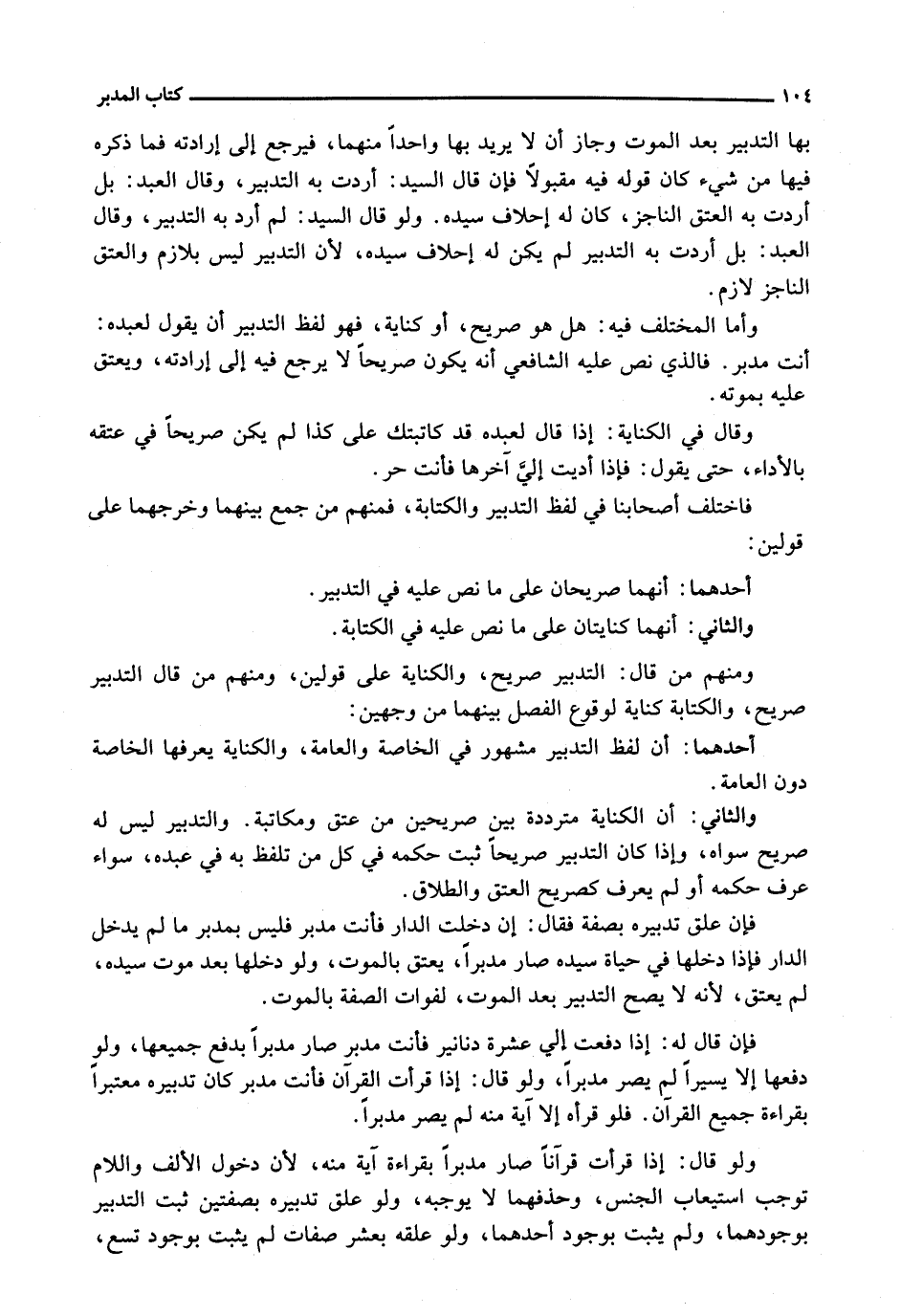 وَمِنْهُمْ مَنْ قَالَ: التَّدْبِيرُ صَرِيحٌ، وَالْكِنَايَةُ عَلَى قَوْلَيْنِ، وَمِنْهُمْ مَنْ قَالَ التَّدْبِيرُ صَرِيحٌ، وَالْكِتَابَةُ كِنَايَةٌ لِوُقُوعِ الْفَصْلِ بَيْنَهُمَا مِنْ وَجْهَيْنِ: