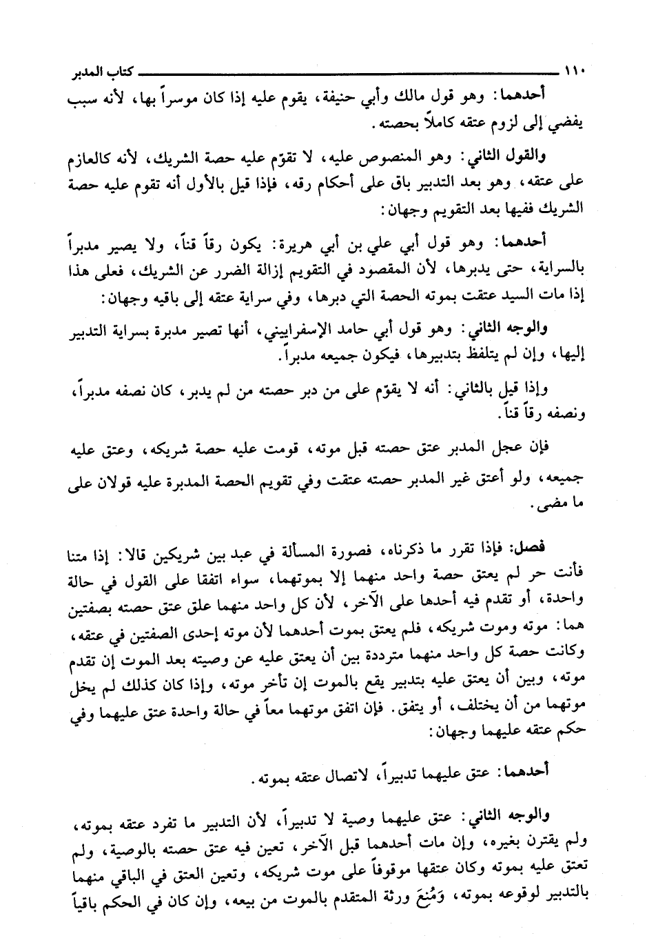 فَإِذَا تَقَرَّرَ مَا ذَكَرْنَاهُ، فَصُورَةُ الْمَسْأَلَةِ فِي عَبْدٍ بَيْنَ شَرِيكَيْنِ قَالَا: إِذَا مُتْنَا فأنت حر لم يعتق حصة واحدة مِنْهُمَا إِلَّا بِمَوْتِهِمَا، سَوَاءٌ اتَّفَقَا عَلَى الْقَوْلِ فِي حَالَةٍ وَاحِدَةٍ، أَوْ تَقَدَّمَ فِيهِ أَحَدُهَا عَلَى الْآخَرِ، لِأَنَّ كُلَّ وَاحِدٍ مِنْهُمَا عَلَّقَ عِتْقَ حِصَّتِهِ بِصِفَتَيْنِ هُمَا: مَوْتُهُ وَمَوْتُ شَرِيكِهِ، فَلَمْ يُعْتَقْ بِمَوْتِ أَحَدِهِمَا لِأَنَّ مَوْتَهُ إِحْدَى الصِّفَتَيْنِ فِي عِتْقِهِ، وَكَانَتْ حِصَّةُ كُلِّ وَاحِدٍ مِنْهُمَا مُتَرَدِّدَةً بَيْنَ أَنْ يُعْتَقَ عَلَيْهِ عَنْ وَصِيَّتِهِ بَعْدَ الْمَوْتِ إِنْ تَقَدَّمَ مَوْتُهُ، وَبَيْنَ أَنْ يُعْتَقَ عَلَيْهِ بِتَدْبِيرٍ يَقَعُ بِالْمَوْتِ إِنْ تَأَخَّرَ مَوْتُهُ، وَإِذَا كَانَ كَذَلِكَ لَمْ يَخْلُ مَوْتُهُمَا مِنْ أَنْ يَخْتَلِفَ، أَوْ يَتَّفِقَ. فَإِنِ اتَّفَقَ مَوْتُهُمَا مَعًا فِي حَالَةٍ وَاحِدَةٍ عَتَقَ عَلَيْهِمَا وَفِي حُكْمِ عِتْقِهِ عَلَيْهِمَا وَجْهَانِ: