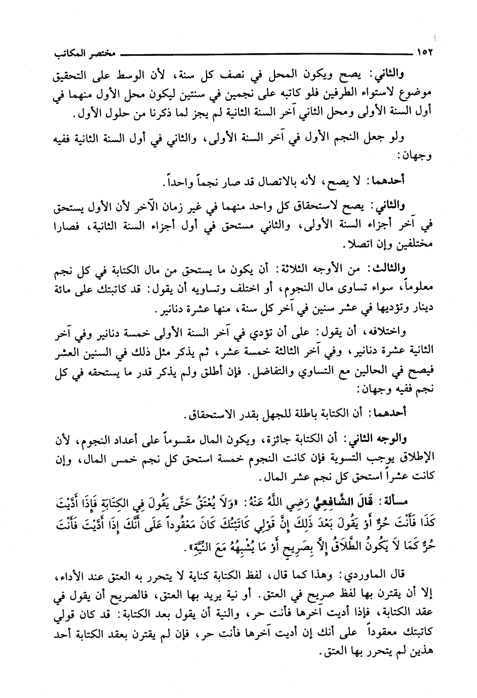 قال الشافعي رضي الله عنه: (وَلَا يَعْتِقُ حَتَّى يَقُولَ فِي الْكِتَابَةِ فَإِذَا أَدَّيْتَ كَذَا فَأَنْتَ حُرٌّ أَوْ يَقُولَ بَعْدَ ذَلِكَ إِنَّ قَوْلِي كَاتَبْتُكَ كَانَ مَعْقُودًا عَلَى أَنَّكَ إِذَا أَدَّيْتَ فَأَنْتَ حُرٌّ كَمَا لَا يَكُونُ الطَّلَاقُ إِلَّا بِصَرِيحٍ أَوْ مَا يُشْبِهُهُ مَعَ النِّيَّةِ) .