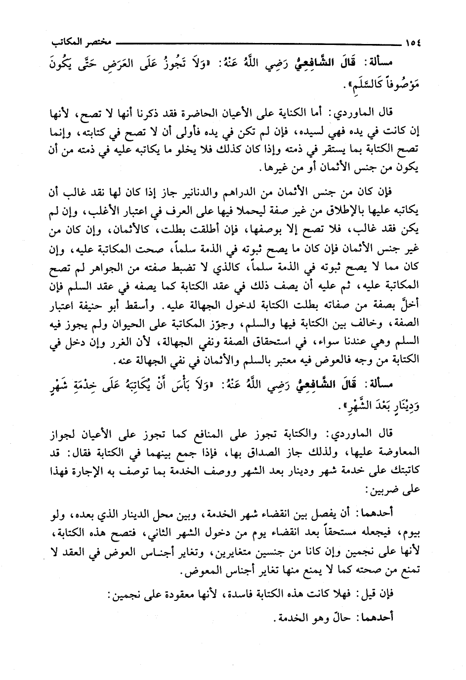 قَالَ الْمَاوَرْدِيُّ: أَمَّا الكناية عَلَى الْأَعْيَانِ الْحَاضِرَةِ فَقَدْ ذَكَرْنَا أَنَّهَا لَا تَصِحُّ، لِأَنَّهَا إِنْ كَانَتْ فِي يَدِهِ فَهِيَ لِسَيِّدِهِ، فَإِنْ لَمْ تَكُنْ فِي يَدِهِ فَأَوْلَى أَنْ لَا تَصِحَّ فِي كِتَابَتِهِ، وَإِنَّمَا تَصِحُّ الْكِتَابَةُ بِمَا يَسْتَقِرُّ فِي ذِمَّتِهِ وَإِذَا كَانَ كَذَلِكَ فَلَا يَخْلُو مَا يُكَاتِبُهُ عَلَيْهِ فِي ذِمَّتِهِ مِنْ أَنْ يَكُونَ مِنْ جِنْسِ الْأَثْمَانِ أَوْ مِنْ غَيْرِهَا.