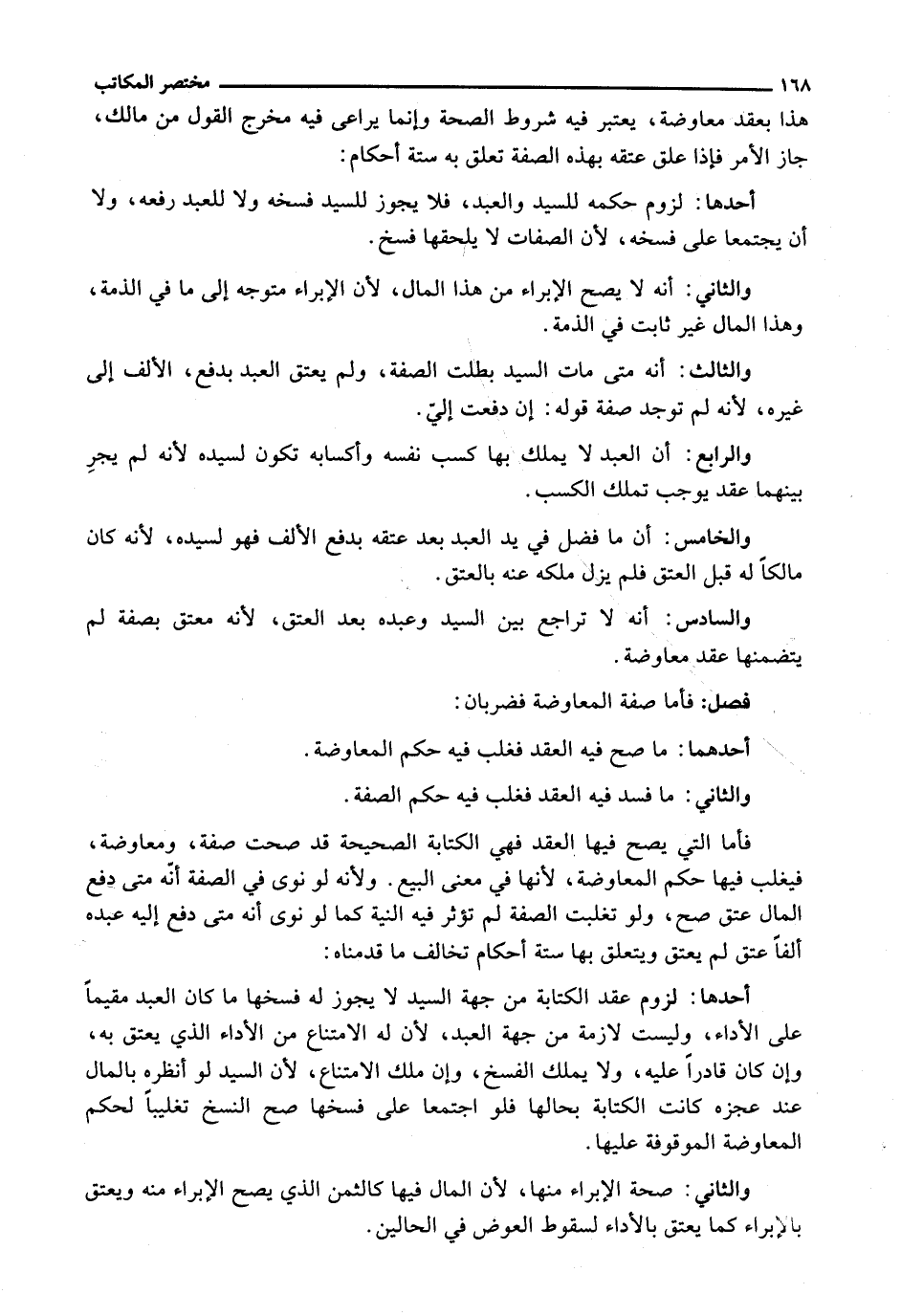 فَأَمَّا الَّتِي يَصِحُّ فِيهَا الْعَقْدُ فَهِيَ الْكِتَابَةُ الصَّحِيحَةُ قَدْ صَحَّتْ صِفَةً، وَمُعَاوَضَةً، فَيَغْلِبُ فِيهَا حُكْمُ الْمُعَاوَضَةِ، لِأَنَّهَا فِي مَعْنَى الْبَيْعِ. وَلِأَنَّهُ لَوْ نَوَى فِي الصِّفَةِ أَنَّهُ مَتَى دَفَعَ الْمَالَ عَتَقَ صَحَّ، وَلَوْ تَغَلَّبَتِ الصِّفَةُ لَمْ تُؤَثِّرْ فِيهِ النِّيَّةُ كَمَا لَوْ نَوَى أَنَّهُ مَتَى دَفَعَ إِلَيْهِ عَبْدُهُ أَلْفًا عَتَقَ لَمْ يَعْتِقْ وَيَتَعَلَّقُ بِهَا سِتَّةُ أَحْكَامٍ تُخَالِفُ مَا قَدَّمْنَاهُ: