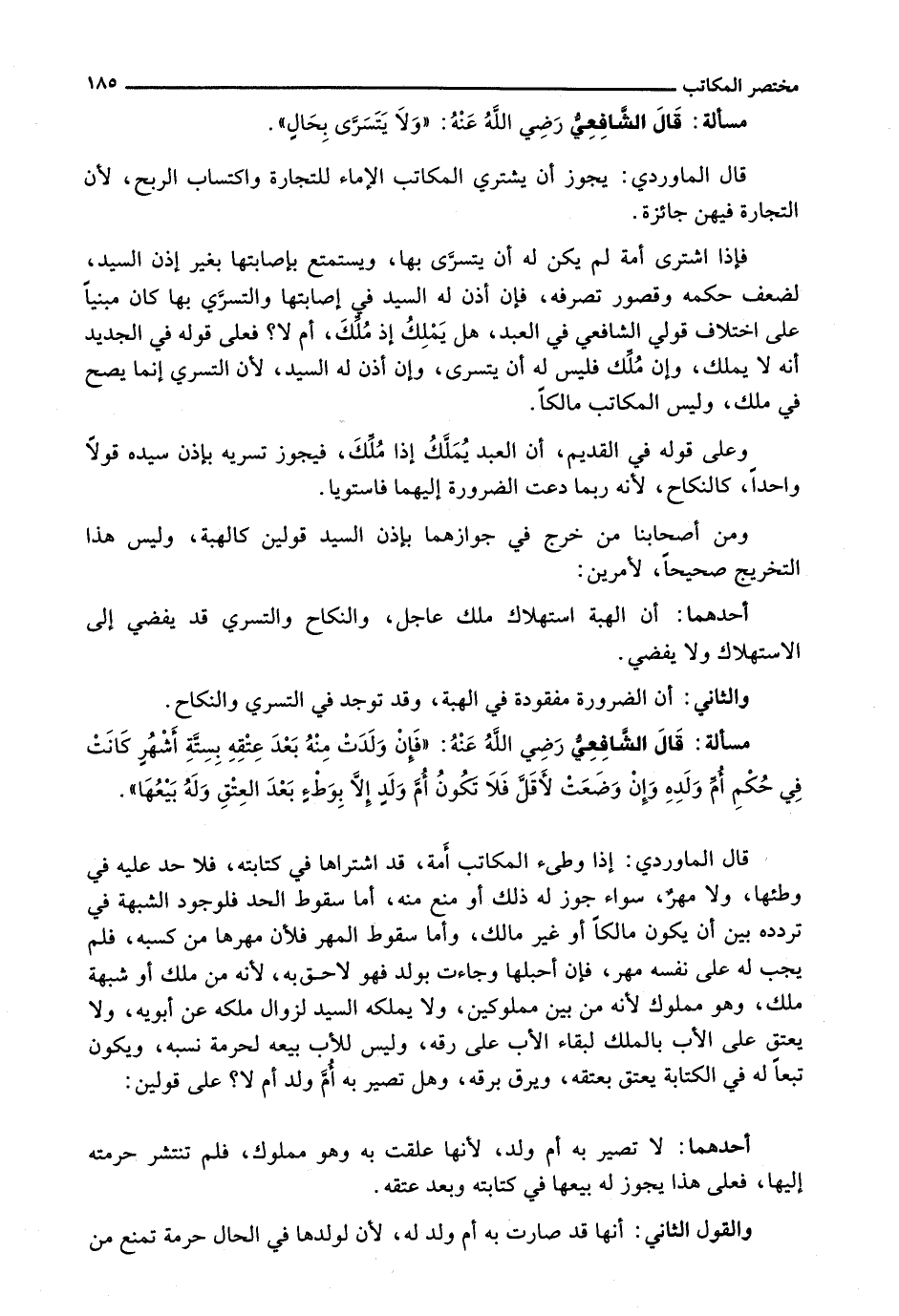 قال الشافعي رضي الله عنه: (وَلَا يَتَسَرَّى بِحَالٍ) .