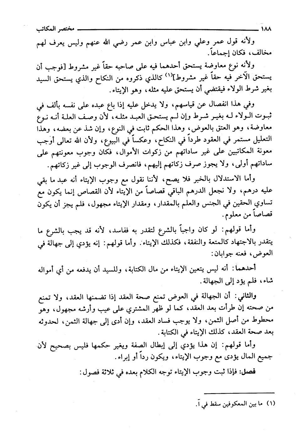 وَأَمَّا الِاسْتِدْلَالُ بِالْخَبَرِ فَلَا يَصِحُّ، لِأَنَّنَا نَقُولُ مَعَ وُجُوبِ الْإِيتَاءِ أَنَّهُ عَبْدٌ مَا بَقِيَ عَلَيْهِ دِرْهَمٌ، وَلَا نَجْعَلُ الدِّرْهَمَ الْبَاقِي قِصَاصًا مِنَ الْإِيتَاءِ لِأَنَّ الْقِصَاصَ إِنَّمَا يَكُونُ مَعَ تَسَاوِي الْحَقَّيْنِ فِي الْجِنْسِ وَالْعِلْمِ بِالْمِقْدَارِ، وَمِقْدَارُ الْإِيتَاءِ مَجْهُولٌ، فَلَمْ يَجُزْ أَنْ يَكُونَ قِصَاصًا مِنْ مَعْلُومٍ.