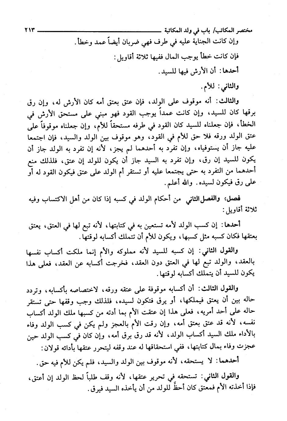 وَالْفَصْلُ الثَّانِي: مِنْ أَحْكَامِ الْوَلَدِ فِي كَسْبِهِ إِذَا كَانَ مِنْ أَهْلِ الِاكْتِسَابِ وَفِيهِ ثَلَاثَةُ أَقَاوِيلَ: