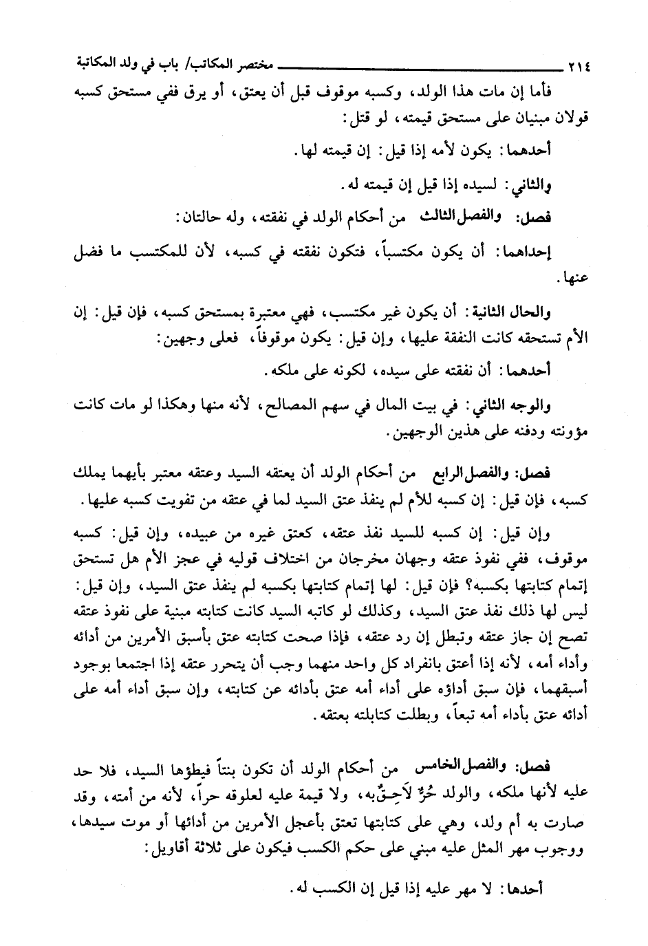 وَالْفَصْلُ الْخَامِسُ مِنْ أَحْكَامِ الْوَلَدِ أَنْ تَكُونَ بِنْتًا فَيَطَؤُهَا السَّيِّدُ، فَلَا حَدَّ عَلَيْهِ لِأَنَّهَا مِلْكُهُ، وَالْوَلَدُ حُرٌّ لَاحِقٌ بِهِ، وَلَا قِيمَةَ عَلَيْهِ لِعُلُوقِهِ حُرًّا، لِأَنَّهُ مِنْ أَمَتِهِ، وَقَدْ صَارَتْ بِهِ أُمَّ وَلَدٍ، وَهِيَ عَلَى كِتَابَتِهَا تُعْتَقُ بِأَعْجَلِ الْأَمْرَيْنِ مِنْ أَدَائِهَا أَوْ مَوْتِ سَيِّدِهَا، وَوُجُوبُ مَهْرِ الْمِثْلِ عَلَيْهِ مَبْنِيٌّ عَلَى حُكْمِ الْكَسْبِ فَيَكُونُ عَلَى ثَلَاثَةِ أَقَاوِيلَ:
