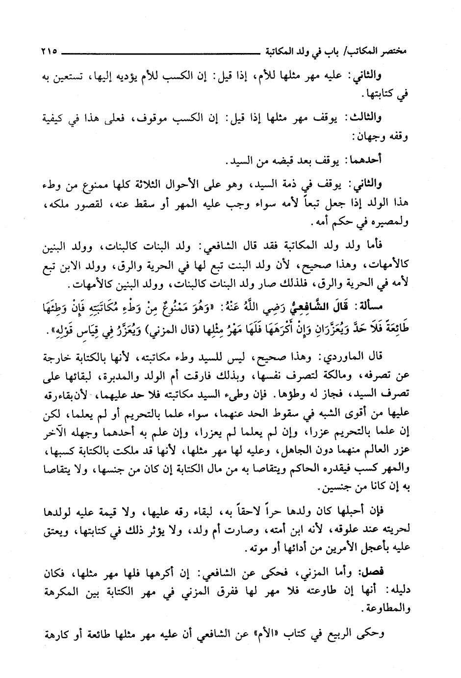 وَأَمَّا الْمُزَنِيُّ، فَحَكَى عَنِ الشَّافِعِيِّ: إِنْ أَكْرَهْهَا فَلَهَا مَهْرُ مِثْلِهَا، فَكَانَ دَلِيلُهُ: أَنَّهَا إِنْ طَاوَعَتْهُ فَلَا مهر فَفَرَّقَ الْمُزَنِيُّ فِي مَهْرِ الْكِتَابَةِ بَيْنَ الْمُكْرَهَةِ وَالْمُطَاوِعَةِ.