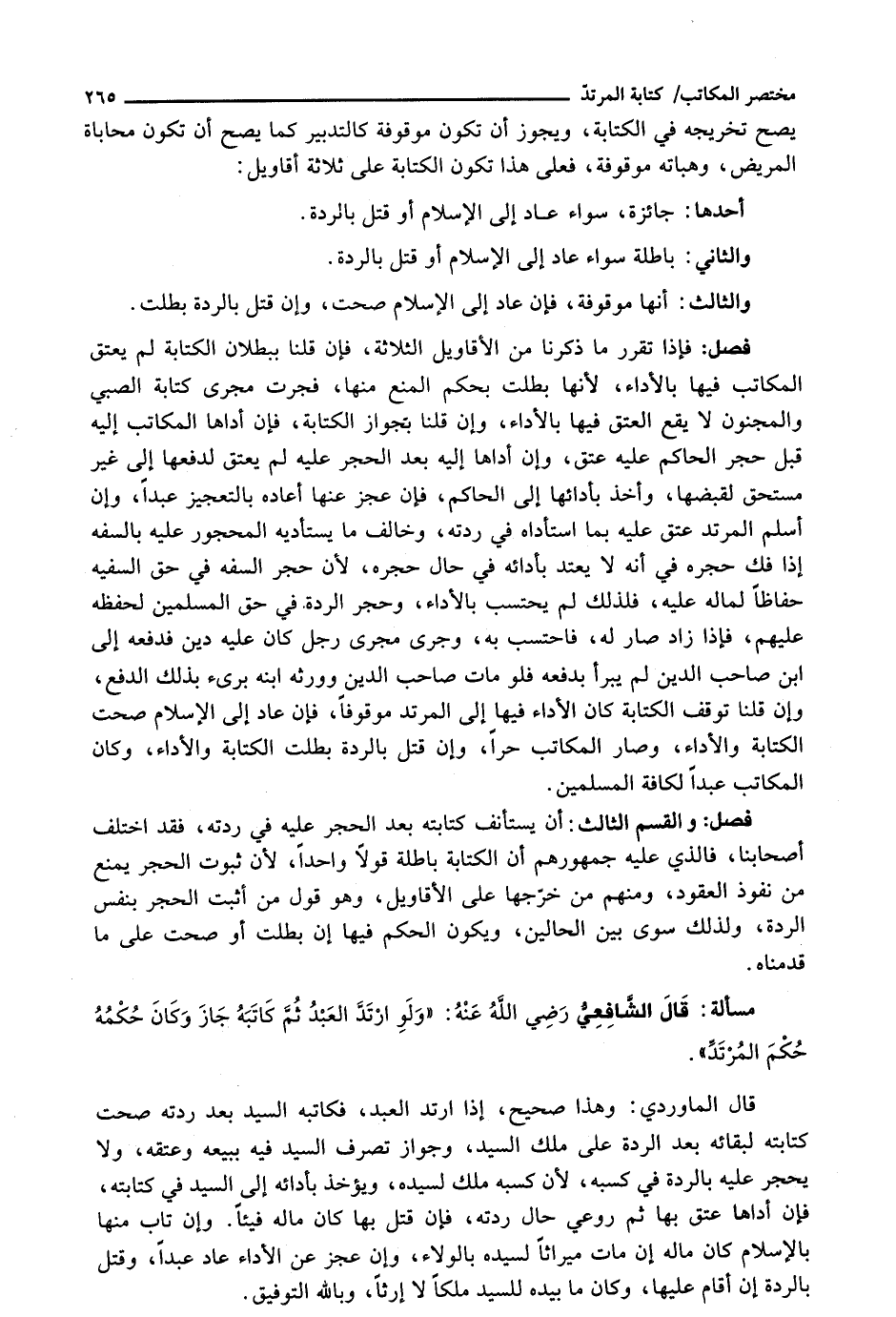 قَالَ الشافعي رضي الله عنه: (وَلَوِ ارْتَدَّ الْعَبْدُ ثُمَّ كَاتَبَهُ جَازَ وَكَانَ حُكْمُهُ حُكْمَ الْمُرْتَدِّ) .