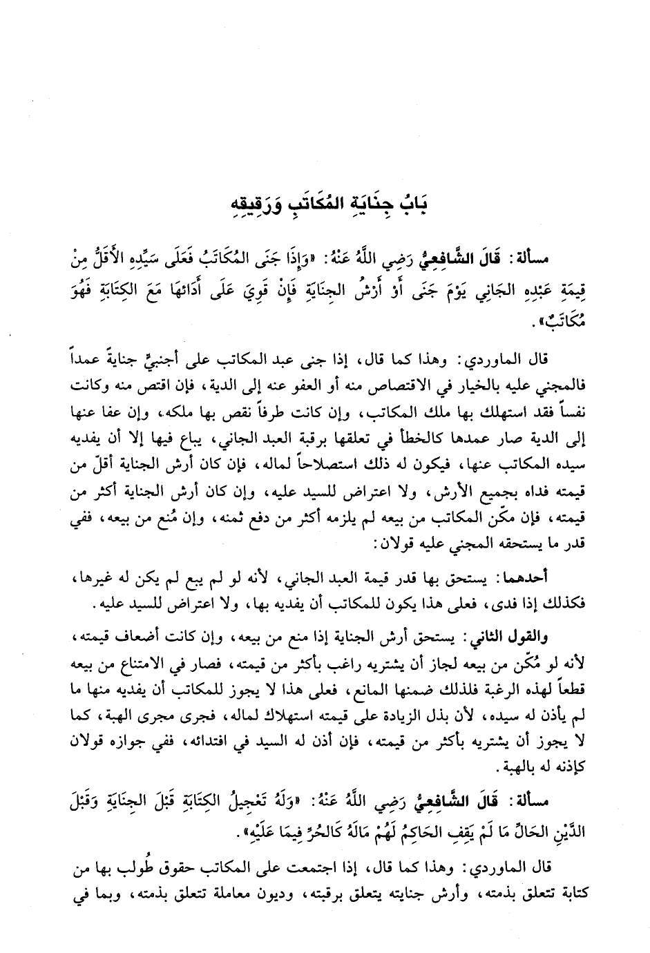قَالَ الْمَاوَرْدِيُّ: وَهَذَا كَمَا قَالَ، إِذَا اجتمعت على المكاتب حقوق طولت بِهَا مِنْ كِتَابَةٍ تَتَعَلَّقُ بِذِمَّتِهِ، وَأَرْشُ جِنَايَتِهِ يَتَعَلَّقُ بِرَقَبَتِهِ، وَدُيُونُ مُعَامَلَةٍ تَتَعَلَّقُ بِذِمَّتِهِ، وَبِمَا في