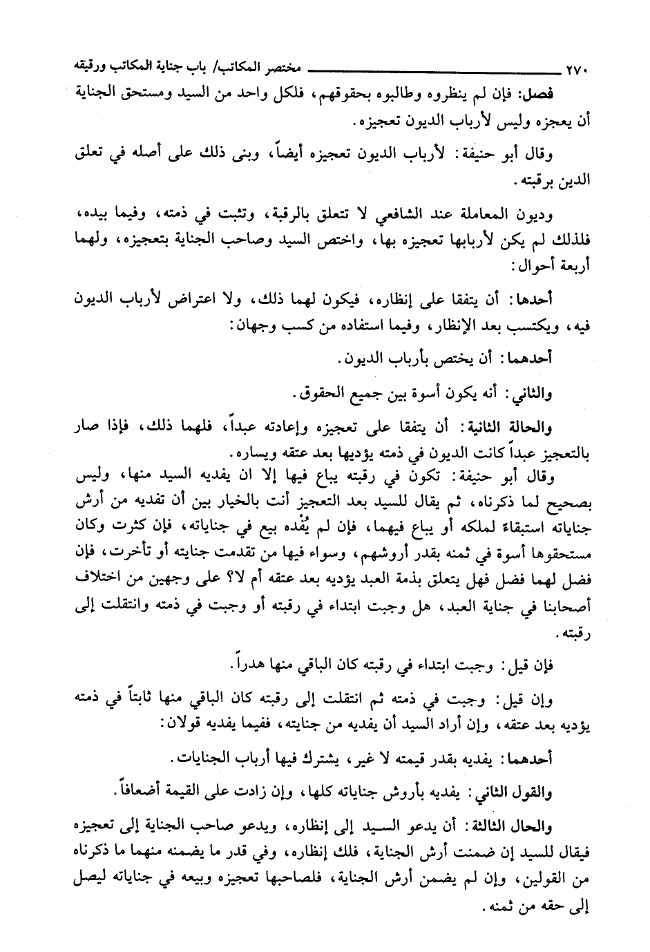 وَقَالَ أَبُو حَنِيفَةَ: لِأَرْبَابِ الدُّيُونِ تَعْجِيزُهُ أَيْضًا، وَبَنَى ذَلِكَ عَلَى أَصْلِهِ فِي تَعَلُّقِ الدَّيْنِ بِرَقَبَتِهِ.