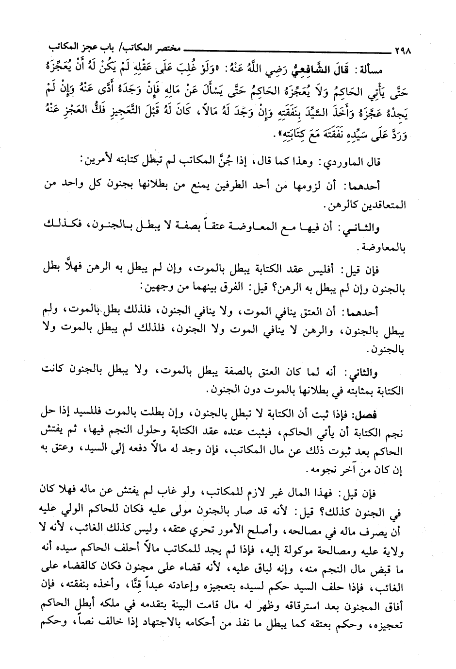 قَالَ الْمَاوَرْدِيُّ: وَهَذَا كَمَا قَالَ، إِذَا جُنَّ الْمُكَاتَبُ لَمْ تَبْطُلْ كِتَابَتُهُ لِأَمْرَيْنِ:
