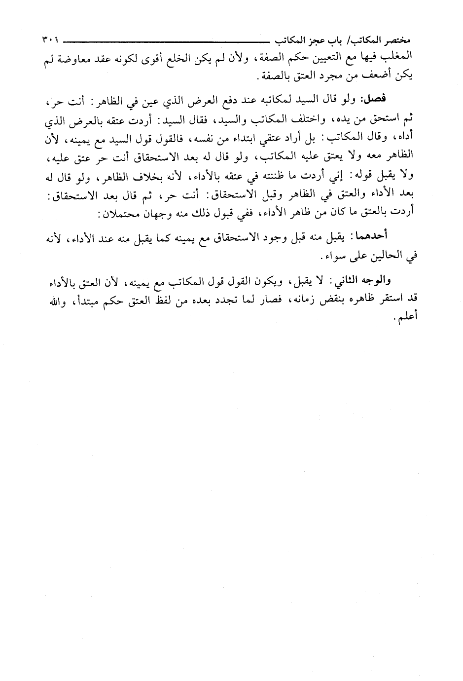 وَالْوَجْهُ الثَّانِي: لَا يُقْبَلُ، وَيَكُونُ الْقَوْلُ قَوْلَ الْمُكَاتَبِ مَعَ يَمِينِهِ، لِأَنَّ الْعِتْقَ بِالْأَدَاءِ قَدِ استقر ظاهره بنقص زَمَانِهِ، فَصَارَ لِمَا تَجَدَّدَ بَعْدَهُ مِنْ لَفْظِ الْعِتْقِ حُكْم مُبْتَدَأ، وَاللَّهُ أَعْلَمُ.