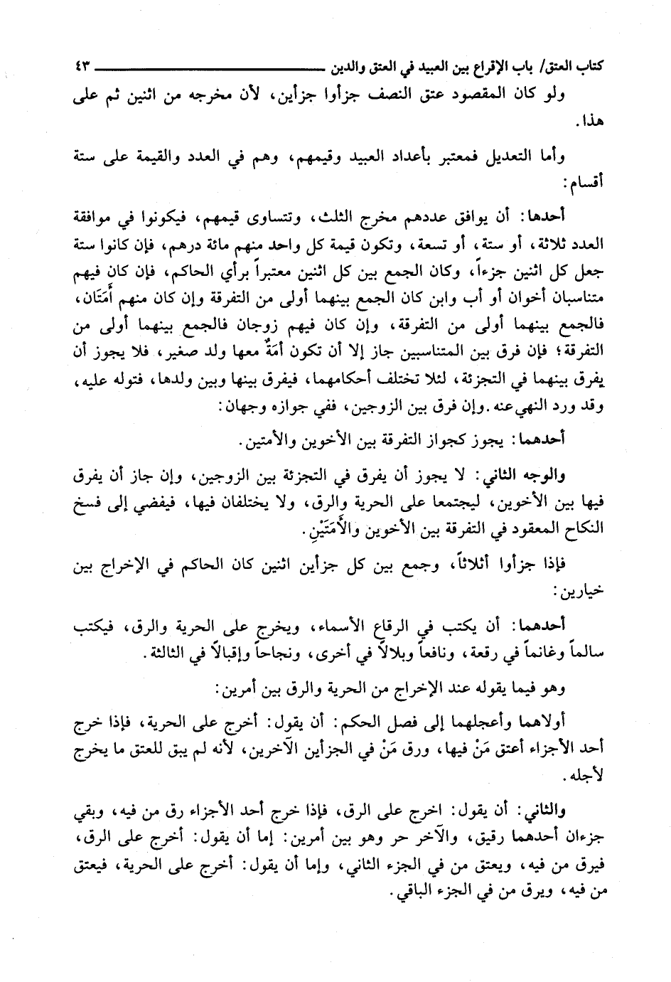 وَأَمَّا التَّعْدِيلُ فَمُعْتَبَرٌ بِأَعْدَادِ الْعَبِيدِ وَقِيَمِهِمْ، وَهُمْ فِي الْعَدَدِ وَالْقِيمَةِ عَلَى سِتَّةِ أَقْسَامٍ: