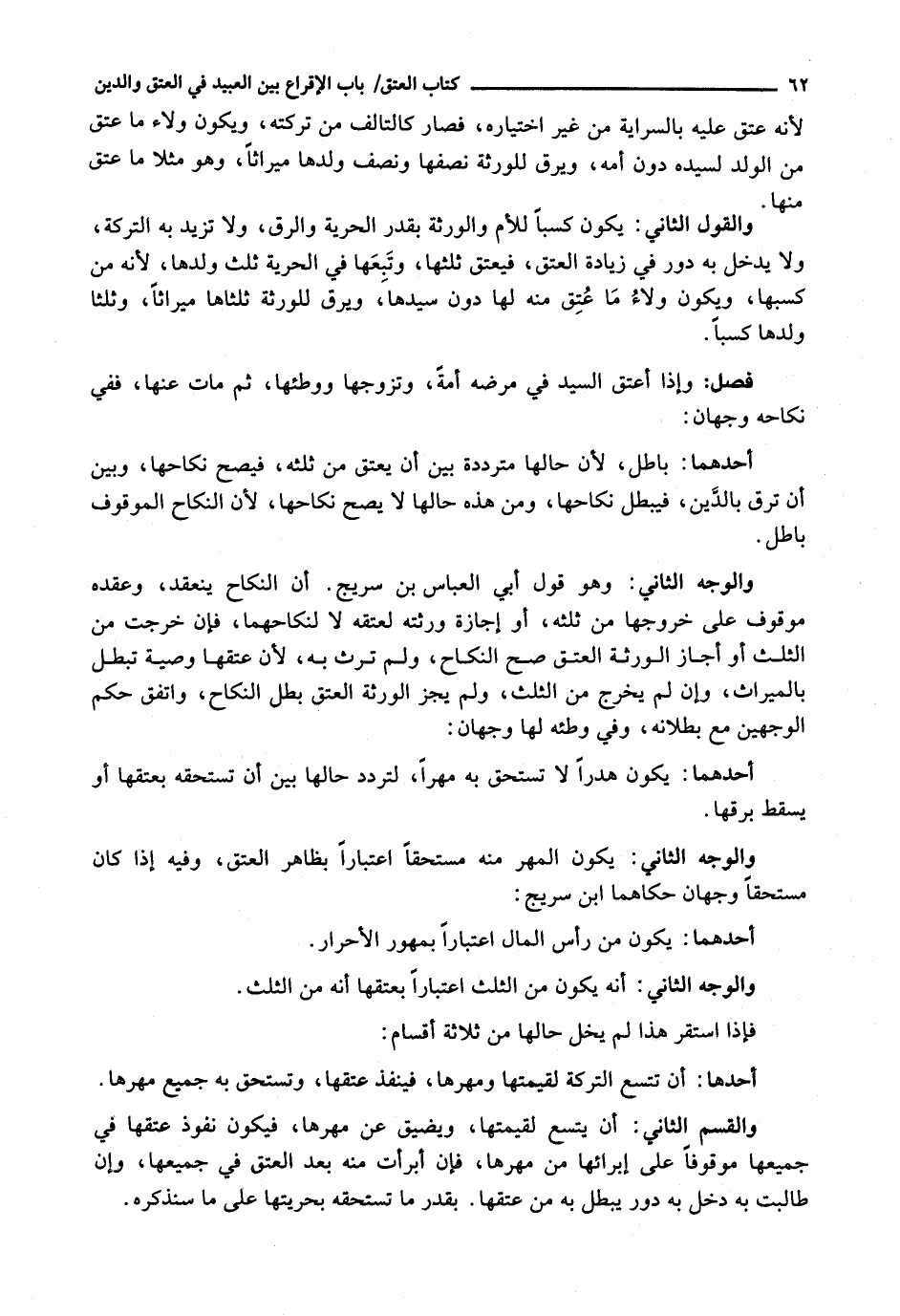 وَالْقِسْمُ الثَّانِي: أَنْ يَتَّسِعَ لِقِيمَتِهَا، وَيَضِيقَ عَنْ مَهْرِهَا، فَيَكُونُ نُفُوذُ عِتْقُهَا فِي جَمِيعِهَا مَوْقُوفًا عَلَى إِبْرَائِهَا مِنْ مَهْرِهَا، فَإِنْ أَبْرَأَتْ مِنْهُ بَعْدَ الْعِتْقِ فِي جَمِيعِهَا، وَإِنْ طَالَبَتْ بِهِ دَخَلَ بِهِ دَوْرٌ يَبْطُلُ بِهِ مِنْ عِتْقِهَا، بِقَدْرِ مَا تَسْتَحِقُّهُ بِحُرِّيَّتِهَا عَلَى ما سنذكره.
