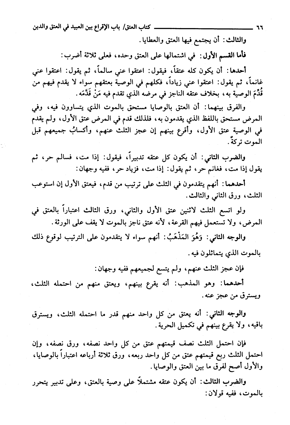 فَأَمَّا الْقِسْمُ الْأَوَّلُ: فِي اشْتِمَالِهَا عَلَى الْعِتْقِ وَحْدَهُ، فَعَلَى ثَلَاثَةِ أَضْرُبٍ: