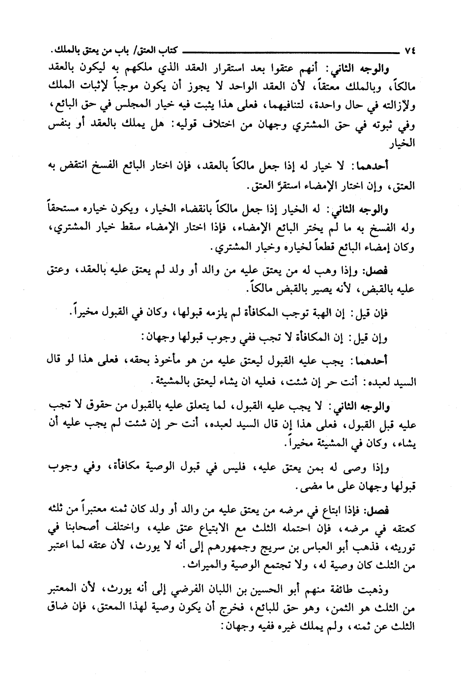 وَالْوَجْهُ الثَّانِي: أَنَّهُمْ عَتَقُوا بَعْدَ اسْتِقْرَارِ الْعَقْدِ الَّذِي مَلَكَهُمْ بِهِ لِيَكُونَ بِالْعَقْدِ مَالِكًا، وَبِالْمِلْكِ مُعْتِقًا، لِأَنَّ الْعَقْدَ الْوَاحِدَ لَا يَجُوزُ أَنْ يَكُونَ مُوجِبًا لِإِثْبَاتِ الْمِلْكِ وَلِإِزَالَتِهِ فِي حَالٍ وَاحِدَةٍ، لِتَنَافِيهِمَا، فَعَلَى هَذَا يَثْبُتُ فِيهِ خِيَارُ الْمَجْلِسِ فِي حَقِّ الْبَائِعِ، وَفِي ثُبُوتِهِ فِي حَقِّ الْمُشْتَرِي وَجْهَانِ مِنِ اخْتِلَافِ قَوْلَيْهِ: هَلْ يَمْلِكُ بِالْعَقْدِ أَوْ بِنَفْسِ الْخِيَارِ.