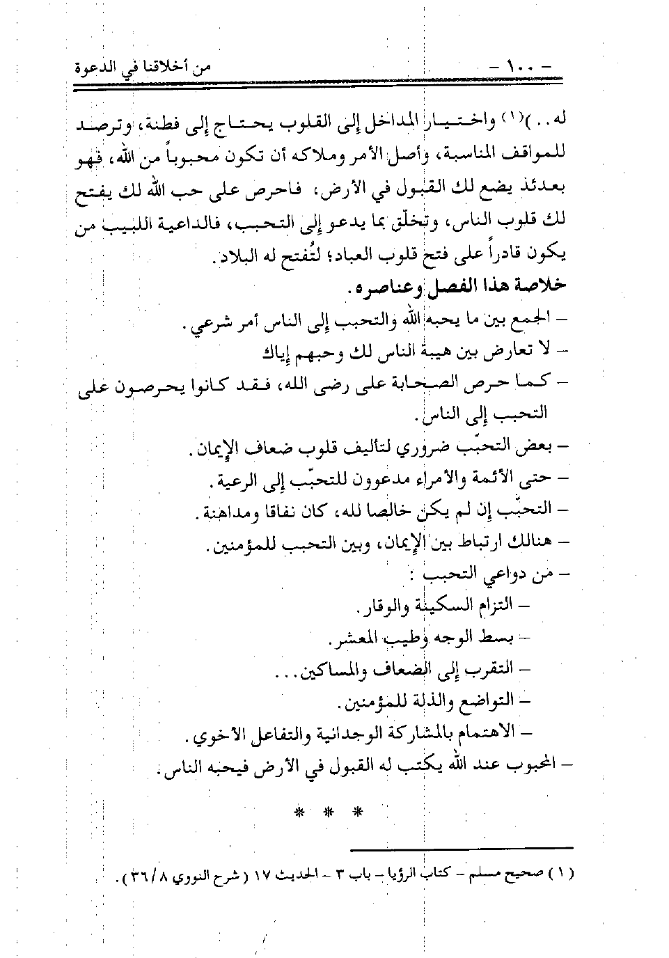 له ..) (¬1)، واختيار المداخل إلى القلوب يحتاج إلى فطنة، وترصد للمواقف المناسبة، وأصل الأمر ومِلاكه أن تكون محبوبًا من الله، فهو بعدئذٍ يضع لك القبول في الأرض، فاحرِص على حب الله لك يفتح لك قلوب الناس، وتخلّق بما يدعو إلى التحبب، فالداعية اللبيب من يكون قادرًا على فتح قلوب العباد؛ لتُفتح له البلاد.