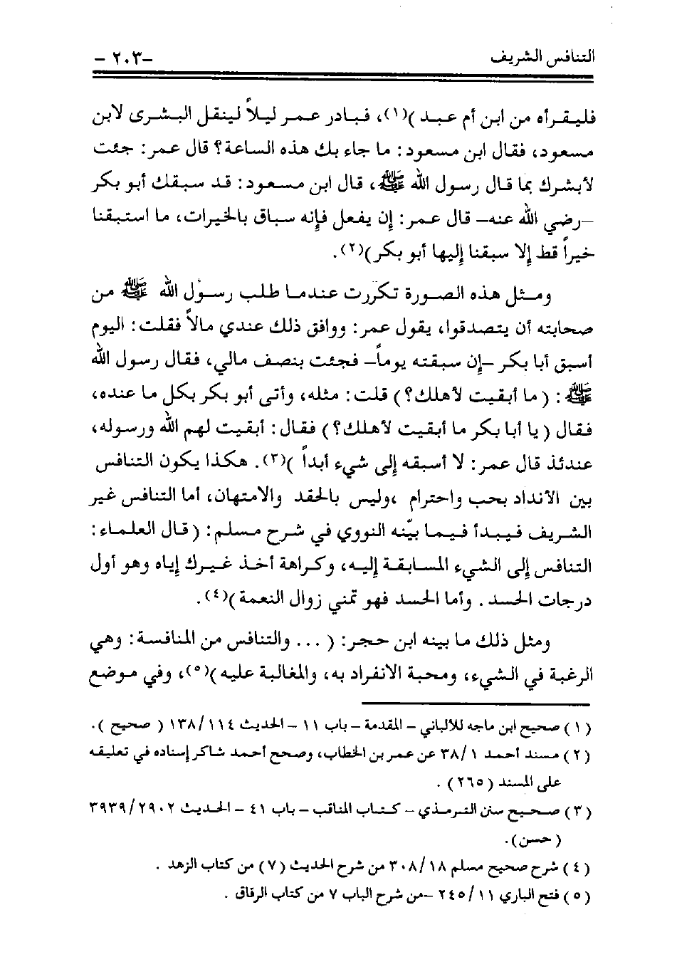 ومثل ذلك ما بيَّنه ابن حجر: (... والتنافس من المنافسة: وهي الرغبة في الشيء، ومحبة الانفراد به، والمغالبة عليه) (¬5).