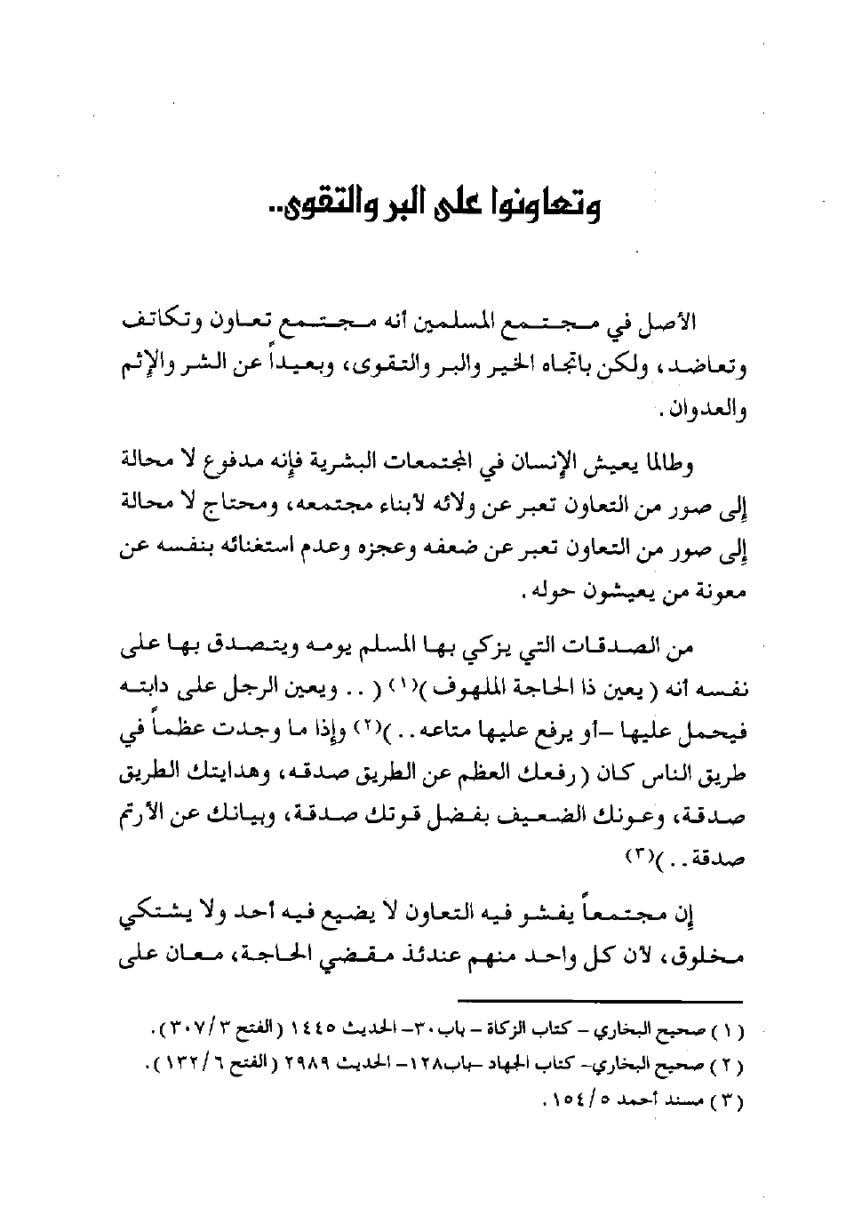 الأصل في مجتمع المسلمين أنه مجتمعُ تعاونٍ وتكاتف وتعاضد، ولكن باتجاه الخير والبر والتقوى، وبعيدًا عن الشر والإثم والعدوان.
