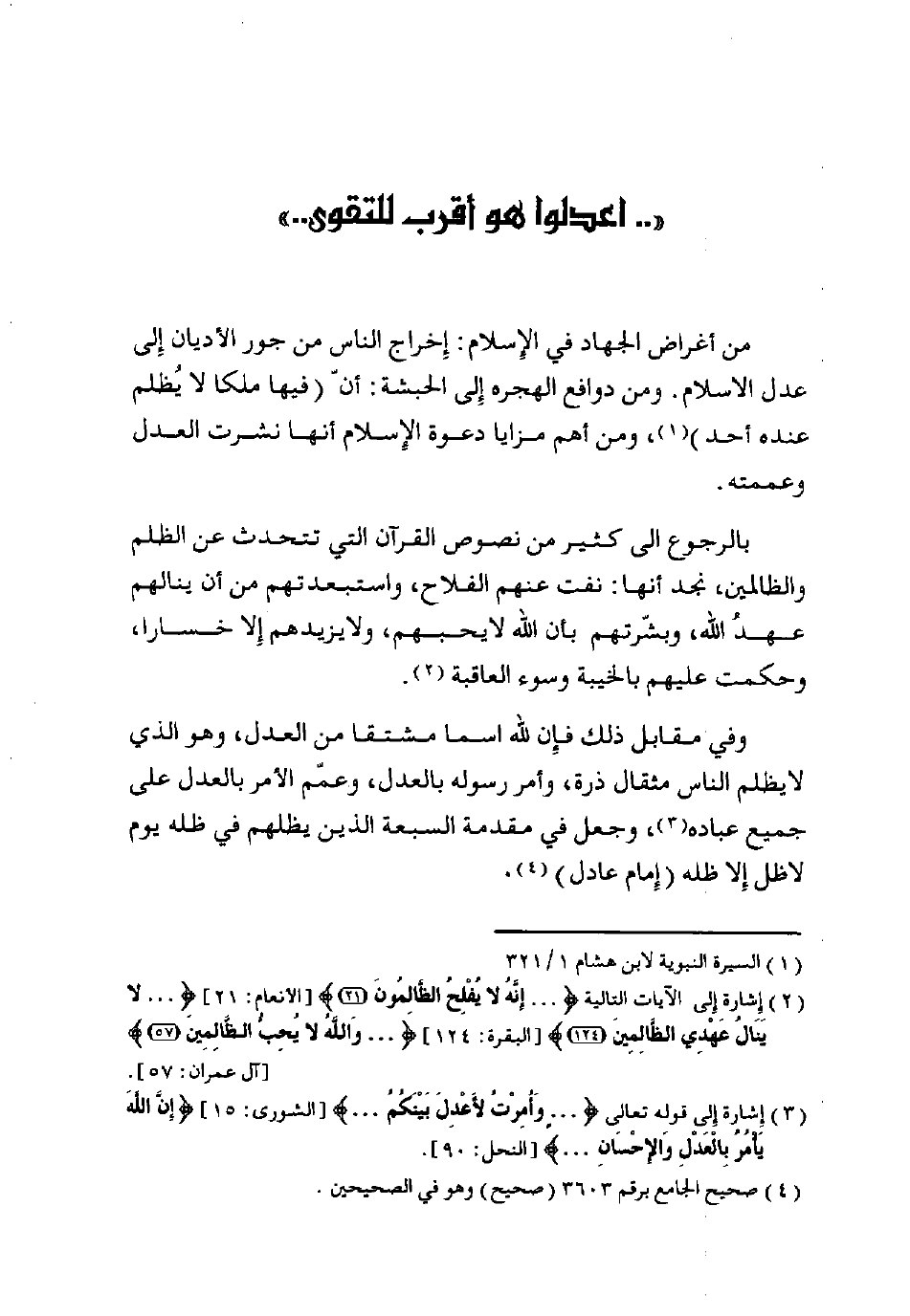 (¬3) إشارة إلى قوله تعالى: {وَأُمِرْتُ لِأَعْدِلَ بَيْنَكُمُ} [الشورى: 15] {إِنَّ اللَّهَ يَامُرُ بِالْعَدْلِ وَالْإِحْسَانِ} [النحل: 90].