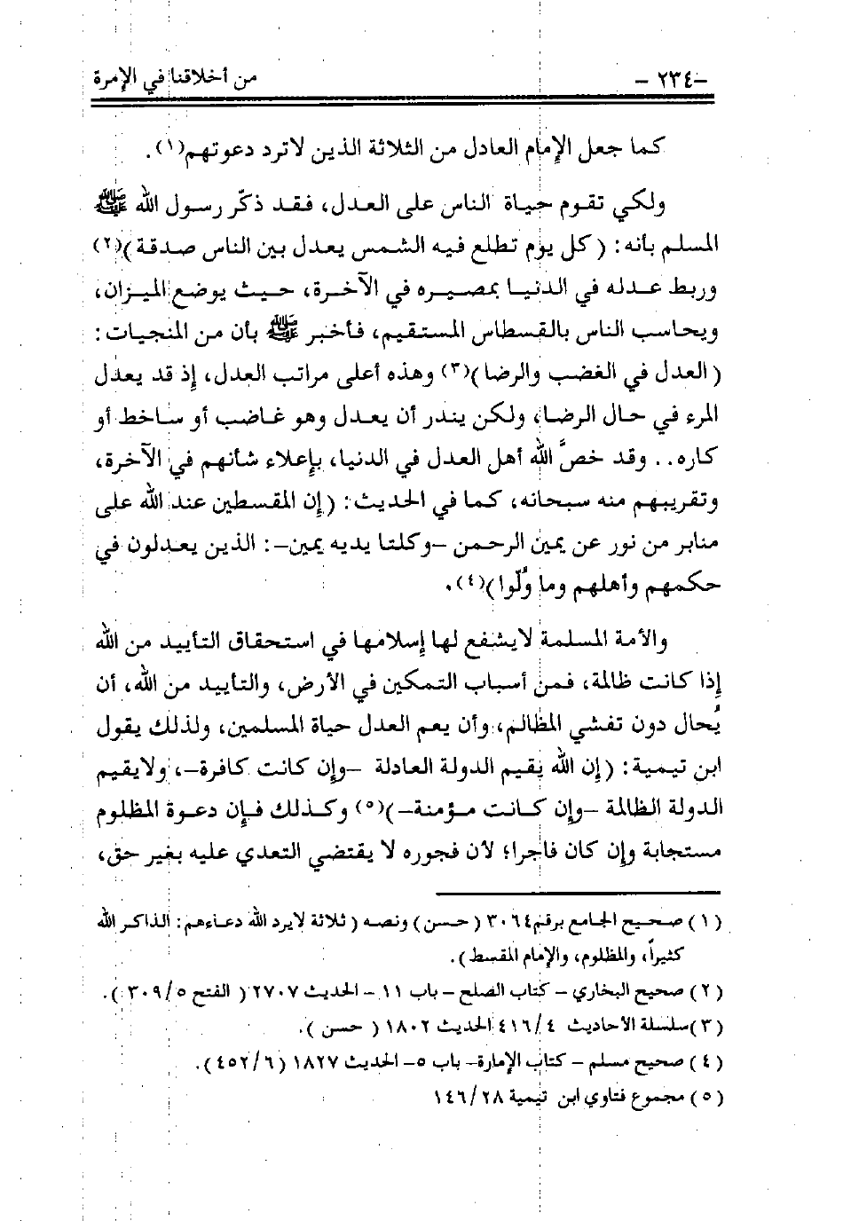 كما جعل الإمام العادل من الثلاثة الذين لا تُرَد دعوتهم (¬1).