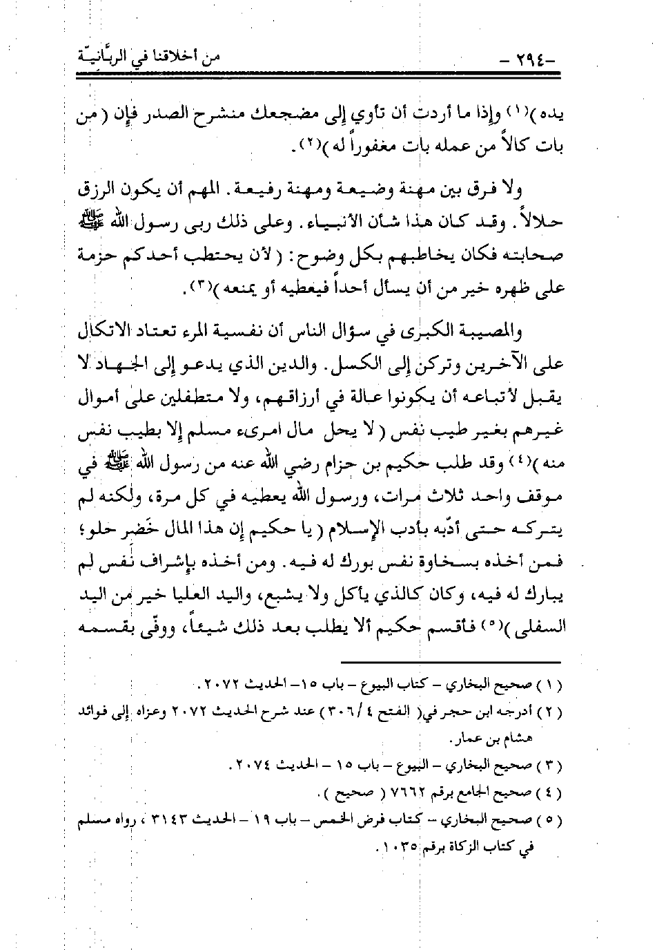 ولا فرق بين مهنة وضيعة ومهنة رفيعة، المهم أن يكون الرزق حلالاً، وقد كان هذا شأن الأنبياء، وعلى ذلك ربَّى رسول الله - صلى الله عليه وسلم - صحابته، فكان يُخاطِبهم بكل وضوح: «لأن يحتطِبَ أحدكم حزمة على ظهره خير من أن يسأل أحدًا فيعطيه أو يمنعه» (¬3).