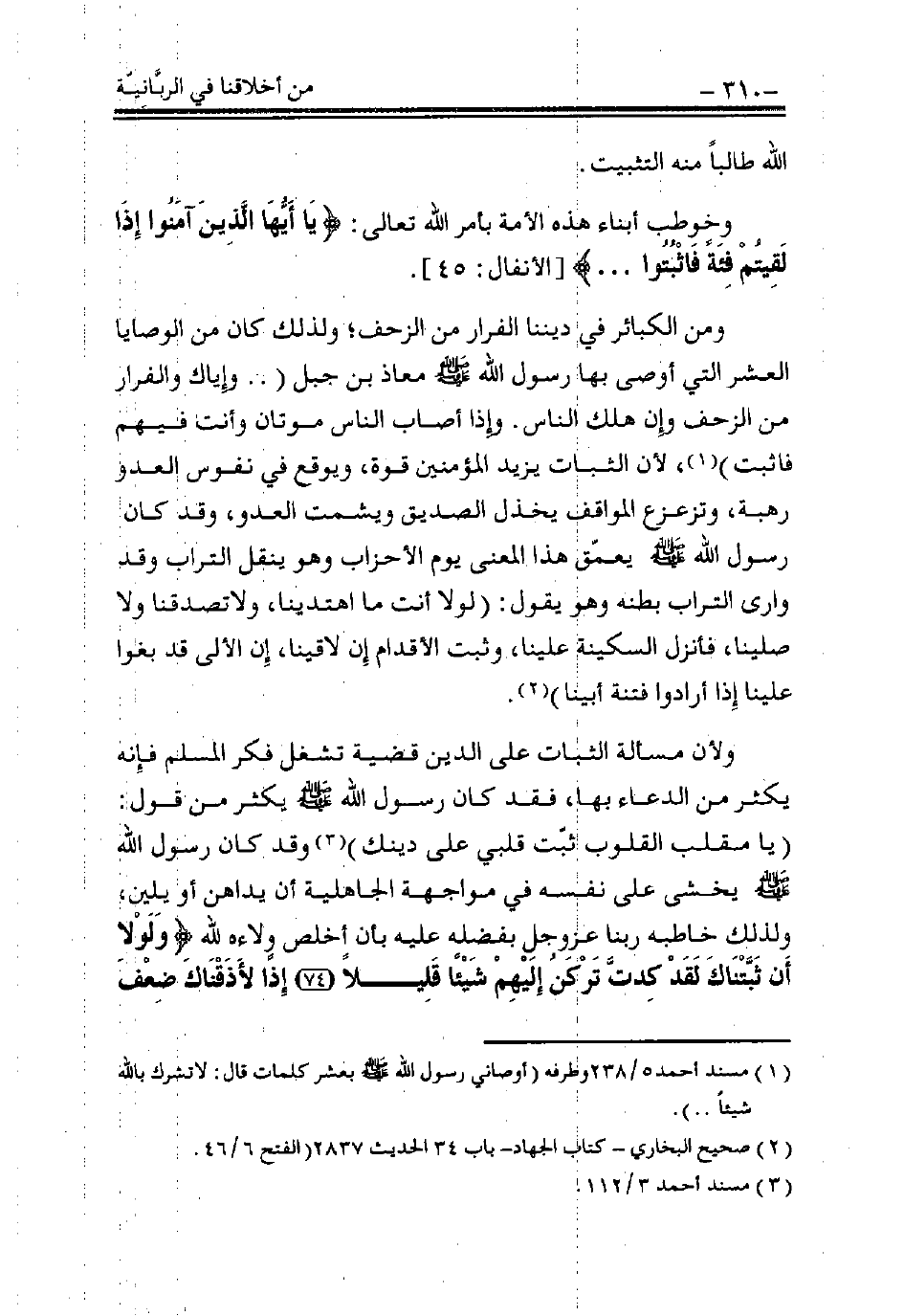 وخُوطِب أبناءُ هذه الأمة بأمر الله تعالى: {يَا أَيُّهَا الَّذِينَ آَمَنُوا إِذَا لَقِيتُمْ فِئَةً فَاثْبُتُوا ...} [الأنفال: 45].
