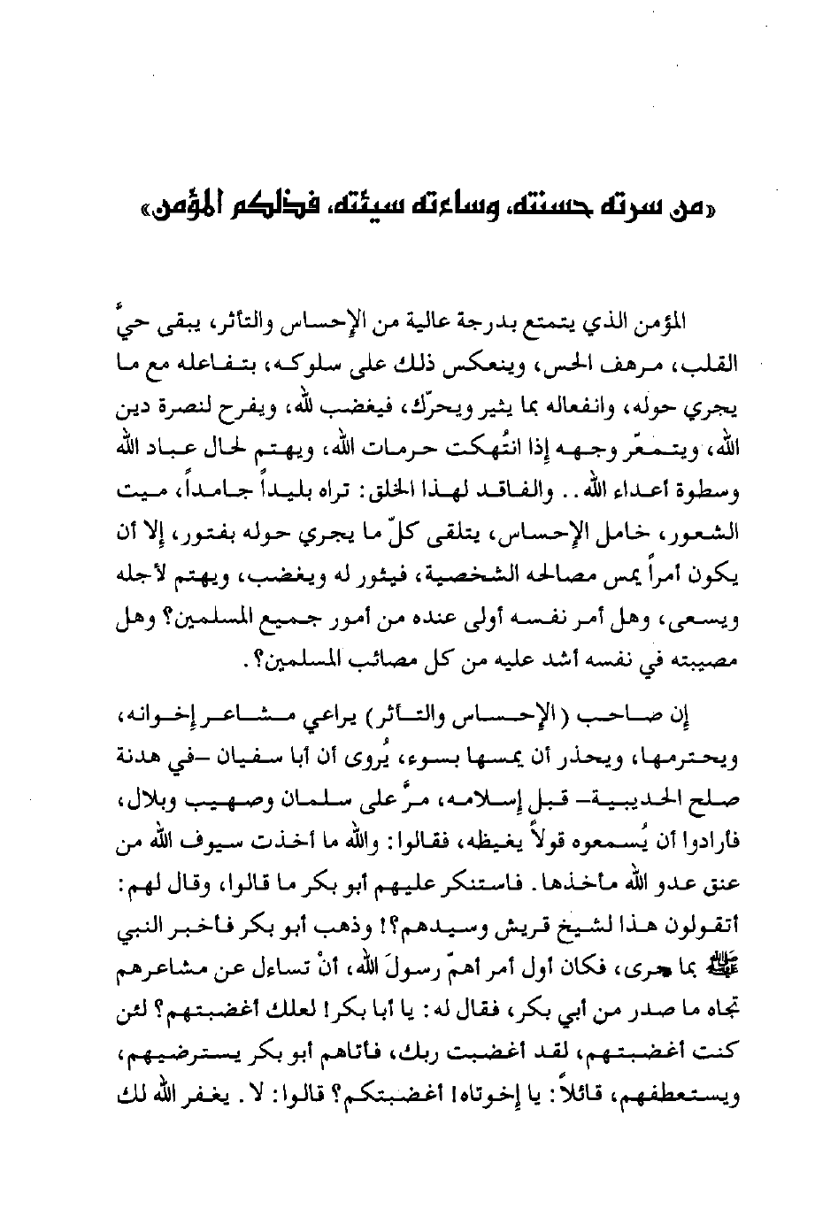 «من سرَّته حسنته وساءته سيئته، فذلكم المؤمن».