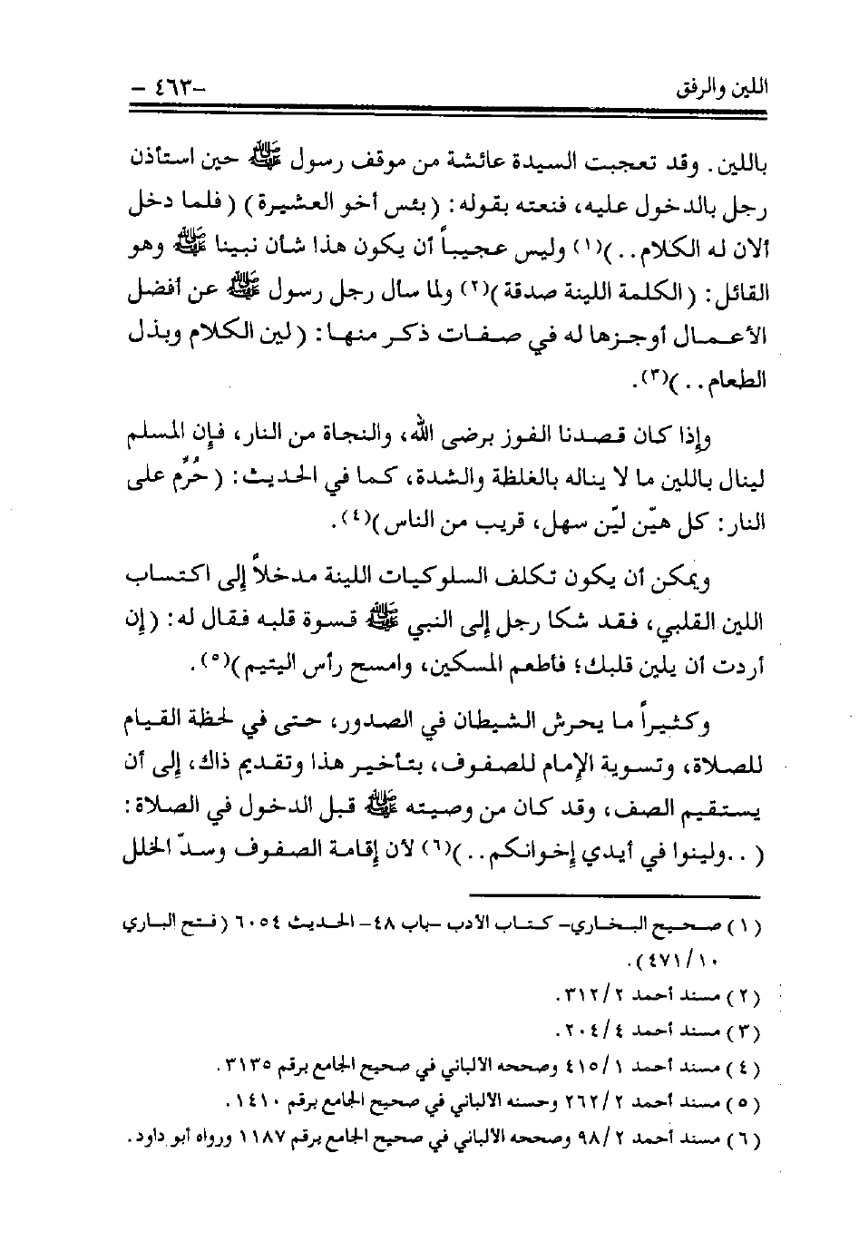 باللين. وقد تعجبت السيدة عائشة من موقف رسول - صلى الله عليه وسلم - حين استأذن رجل بالدخول عليه، فنعته بقوله: «بئس أخو العشيرة، فلما دخل ألان له الكلام ..» (¬1)، وليس عجيبًا أن يكون هذا شأن نبينا - صلى الله عليه وسلم - وهو القائل: «الكلمة اللينة صدقة» (¬2)، ولما سأل رجل رسول - صلى الله عليه وسلم - عن أفضل الأعمال أوجزها له في صفات ذكر منها: «لين الكلام وبذلك الطعام» (¬3).