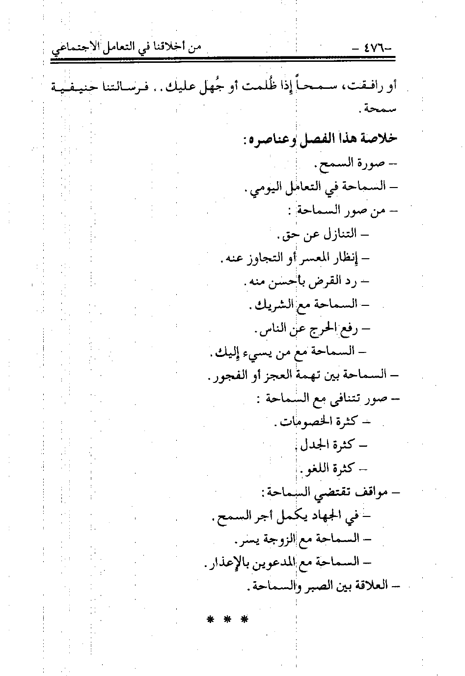 أو رافقت، سمحًا إذا ظُلمت أو جُهل عليك، فرسالتنا حنيفيَّة سمحة.