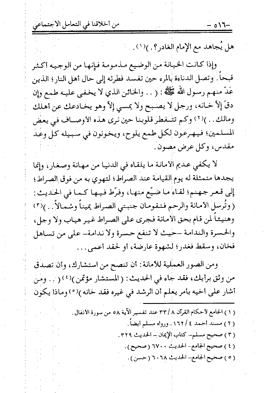 وإذا كانت الخيانة من الوضيع مذمومة، فإنها من الوجيه أكثر قبحًا، وتصل الدناءة بالمرء حين تفسد فطرته إلى حال أهل النار؛ الذين عدَّ منهم رسول الله - صلى الله عليه وسلم -: «والخائن الذي لا يخفى عليه طمع وإن دقَّ إلا خانه، ورجل لا يصبح ولا يمسي إلا وهو يخادعك عن أهلك ومالك» (¬2)، وكم تنفطِرُ قلوبنا حين نرى هذه الأوصاف في بعض المسلمين، فيُهرَعون لكل طمع يلوح، ويخونون في سبيله كل وعد مقدس، وكل عِرْض مَصُون.