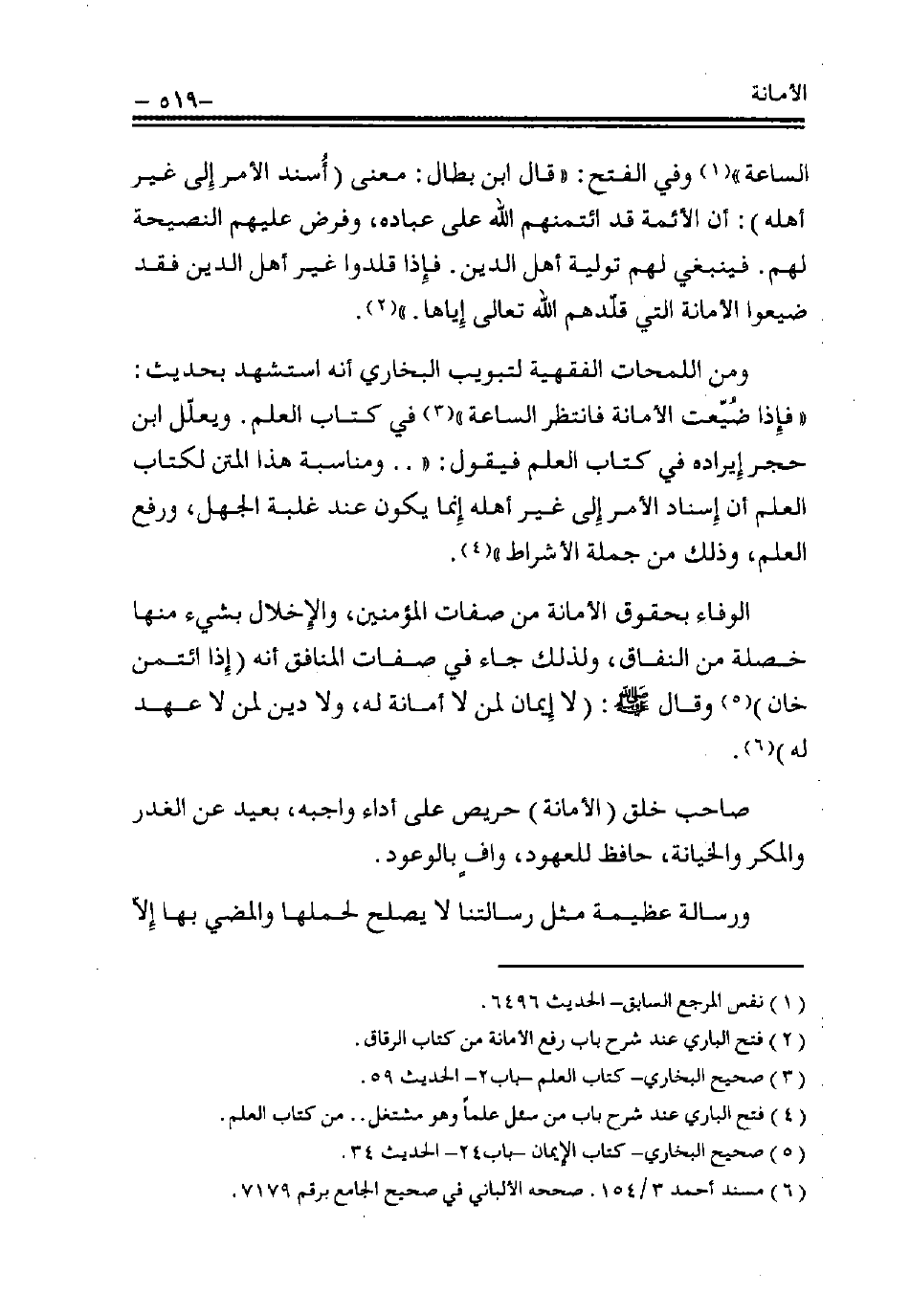 (¬1) نفس المرجع السابق - الحديث 6496.
