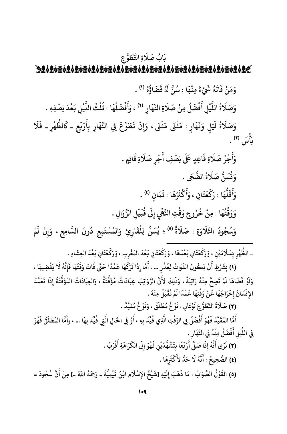 (¬5) القول الصواب: ما ذهب إليه [شيخ الإسلام ابن تيمية - رحمه الله -] من أن سجود التلاوة ليس بصلاةٍ.