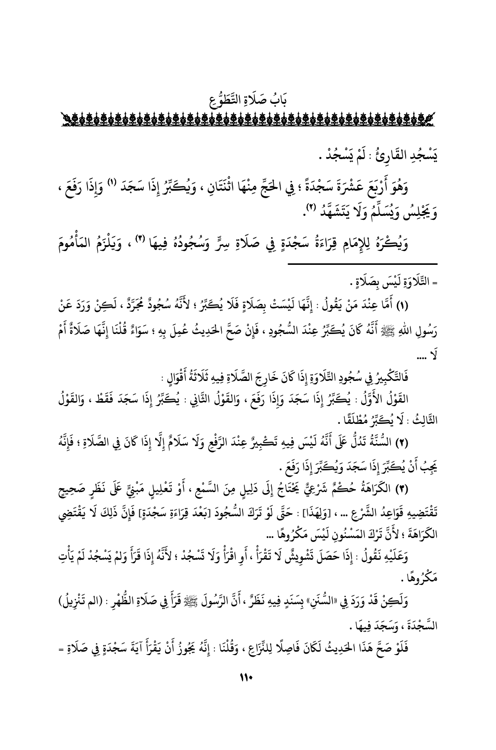 (¬3) الكراهة حكمٌ شرعي يحتاج إلى دليلٍ من السمع، أو تعليلٍ مبني على نظرٍ صحيحٍ تقتضيه قواعد الشرع ... ، [ولهذا]: حتى لو ترك السجود [بعد قراءة سجدةٍ] فإن ذلك لا يقتضي الكراهة؛ لأن ترك المسنون ليس مكروهًا ...