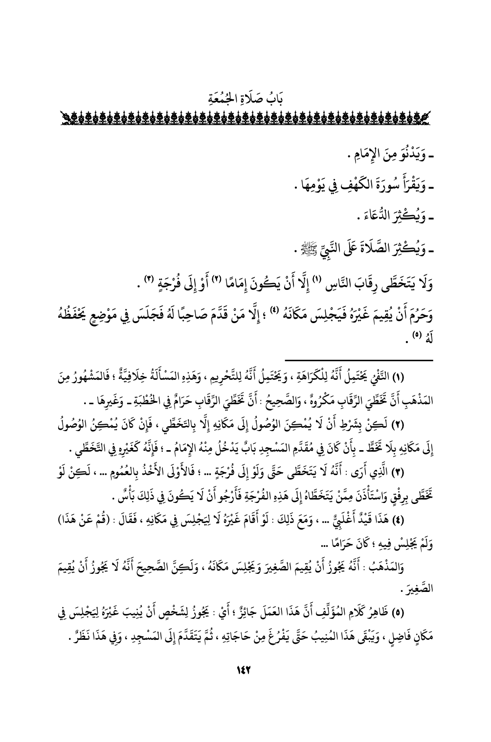 (¬3) الذي أرى: أنه لا يتخطى حتى ولو إلى فرجةٍ ... ؛ فالأولى الأخذ بالعموم ... ، لكن لو تخطى برفقٍ واستأذن ممن يتخطاه إلى هذه الفرجة فأرجو أن لا يكون في ذلك بأسٌ.