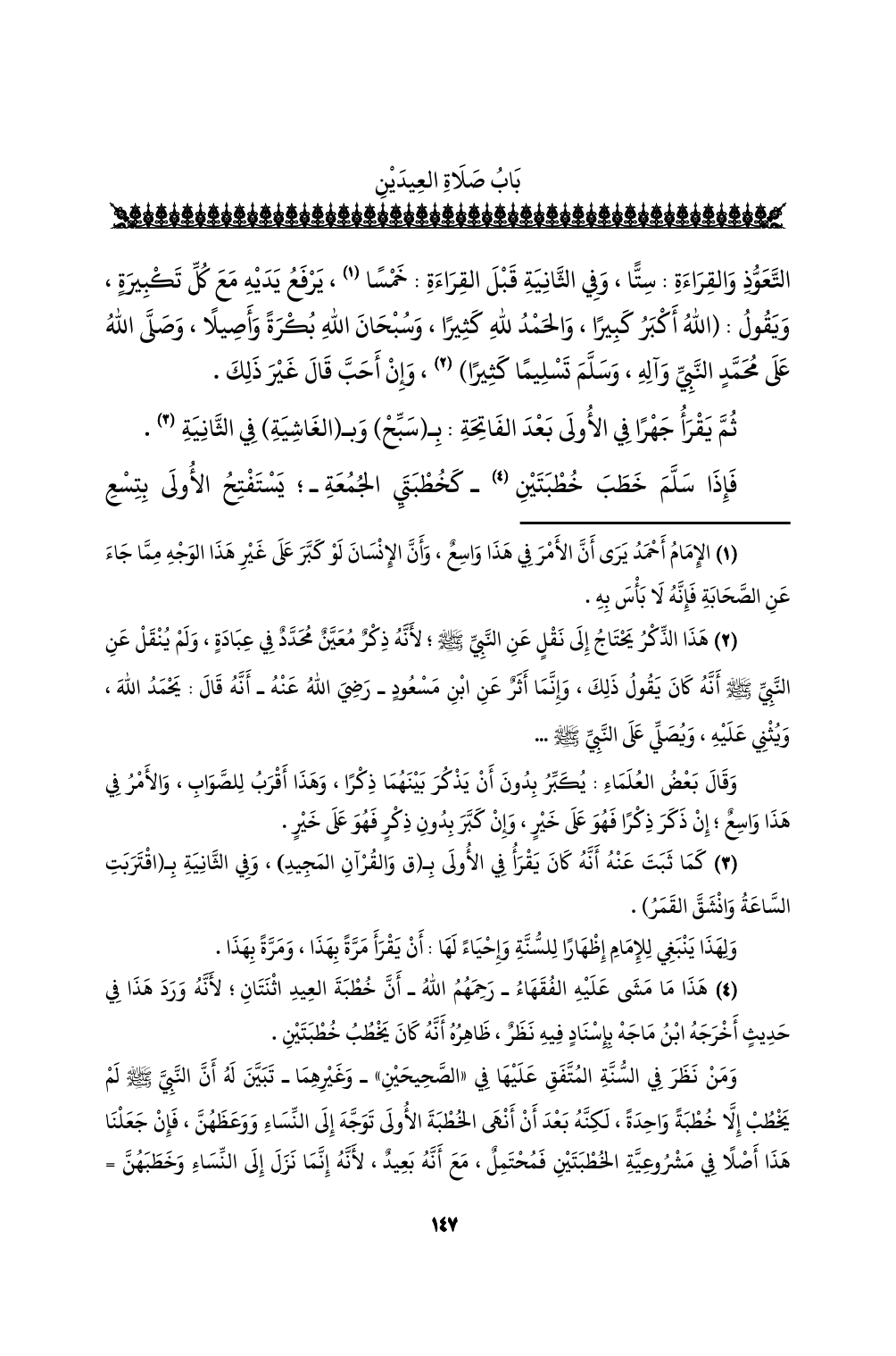 (¬4) هذا ما مشى عليه الفقهاء - رحمهم الله - أن خطبة العيد اثنتان؛ لأنه ورد هذا في حديثٍ أخرجه ابن ماجه بإسنادٍ فيه نظرٌ، ظاهره أنه كان يخطب خطبتين.