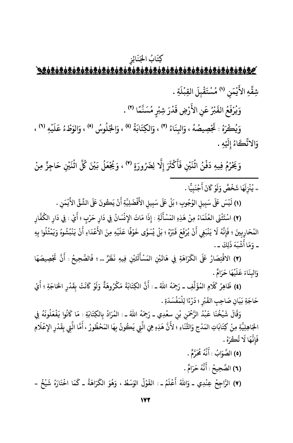 (¬3) الاقتصار على الكراهة في هاتين المسألتين فيه نظرٌ ... ؛ فالصحيح: أن تجصيصها والبناء عليها حرامٌ.
