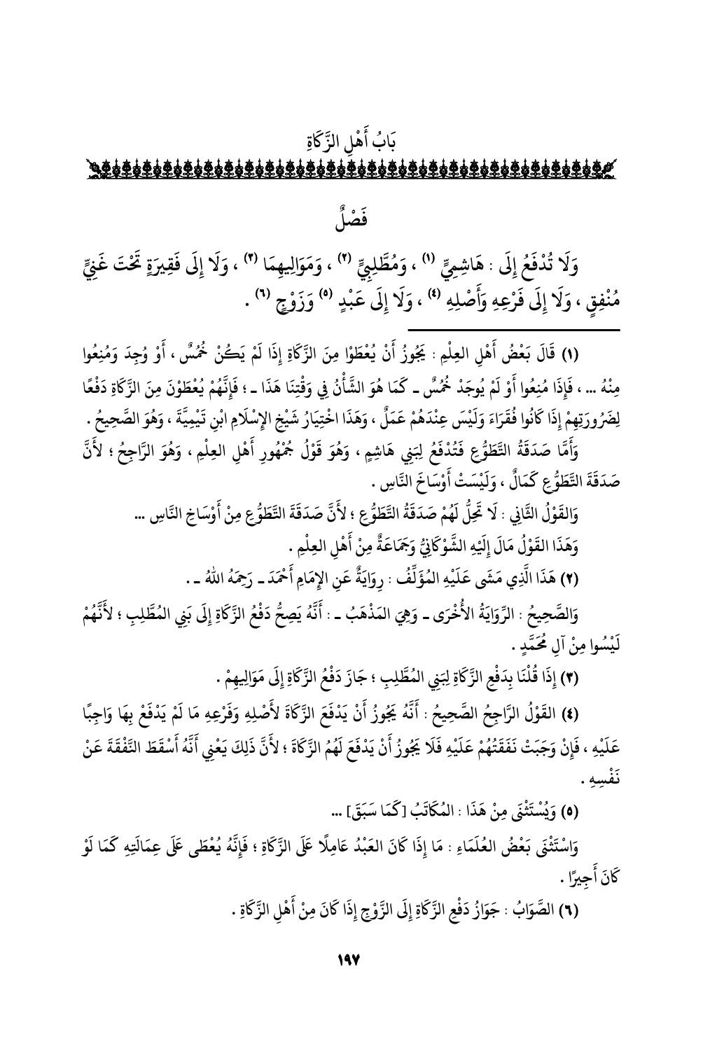 ولا تدفع إلى: هاشمي (¬1)، ومطلبي (¬2)، ومواليهما (¬3)، ولا إلى فقيرةٍ تحت غني منفقٍ، ولا إلى فرعه وأصله (¬4)، ولا إلى عبدٍ (¬5) وزوجٍ (¬6).