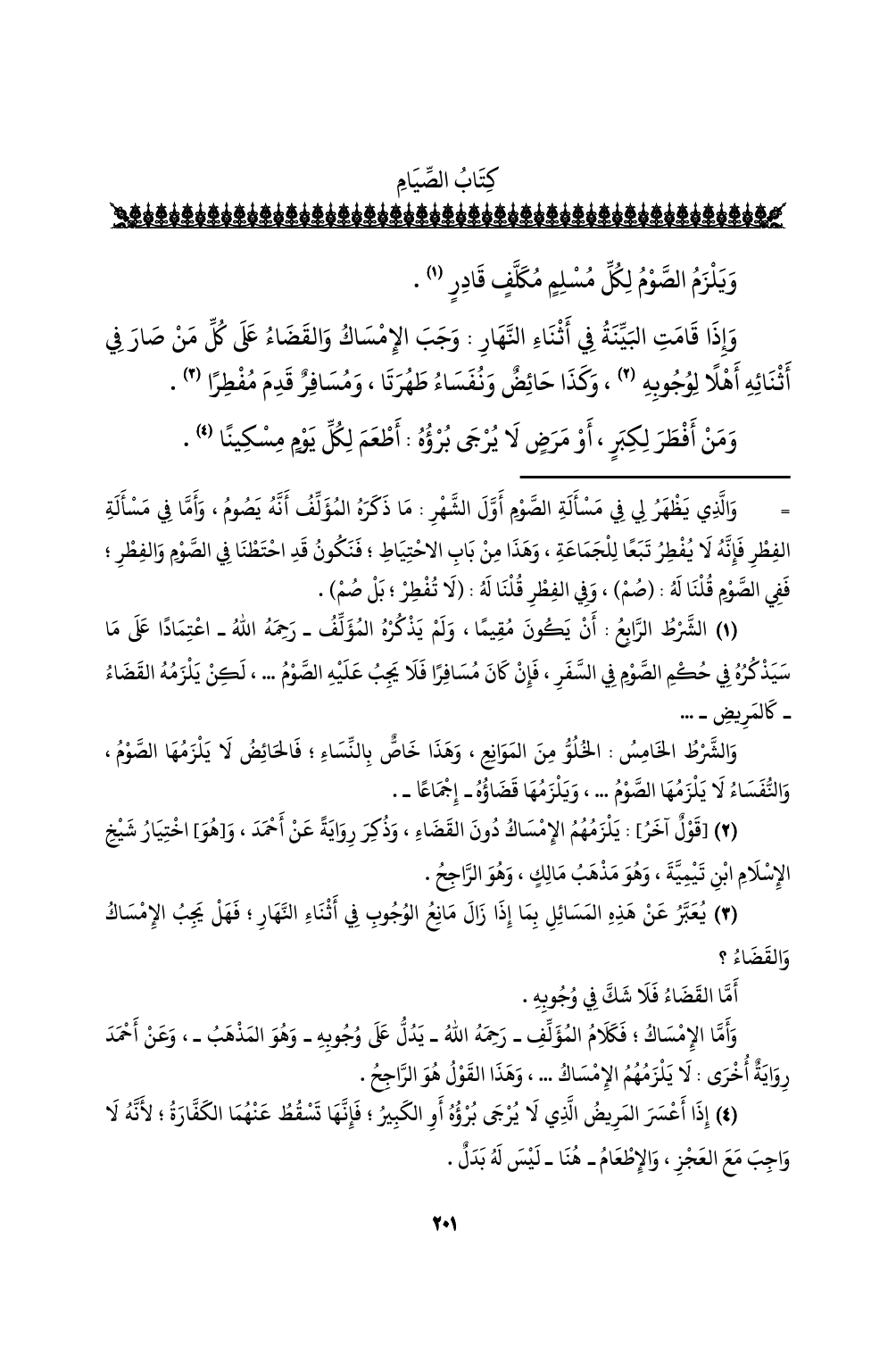 (¬3) يعبر عن هذه المسائل بما إذا زال مانع الوجوب في أثناء النهار؛ فهل يجب الإمساك والقضاء؟