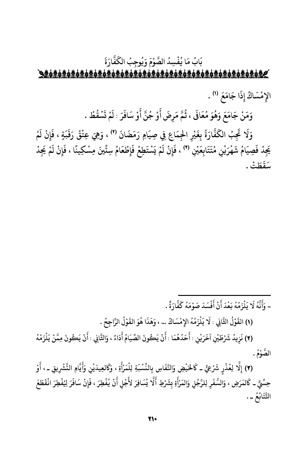 (¬2) نزيد شرطين آخرين: أحدهما: أن يكون الصيام أداءً، والثاني: أن يكون ممن يلزمه الصوم.