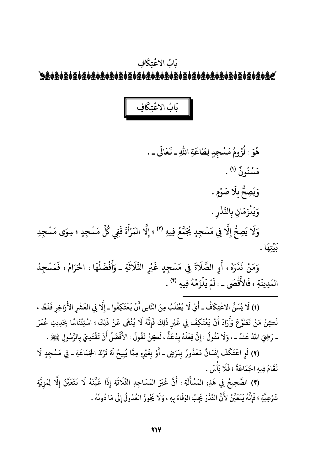 (¬1) لا يسن الاعتكاف - أي لا يطلب من الناس أن يعتكفوا - إلا في العشر الأواخر فقط، لكن من تطوع وأراد أن يعتكف في غير ذلك فإنه لا ينهى عن ذلك؛ استئناسًا بحديث عمر - رضي الله عنه -، ولا نقول: إن فعله بدعةٌ، لكن نقول: الأفضل أن تقتدي بالرسول صلى الله عليه وسلم.