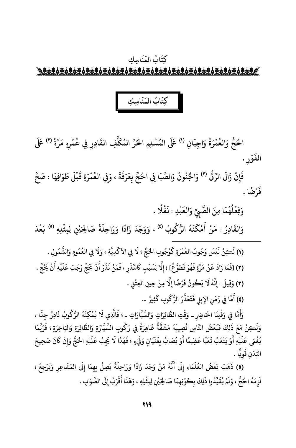 (¬4) أما في زمن الإبل فتعذر الركوب كثيرٌ ...