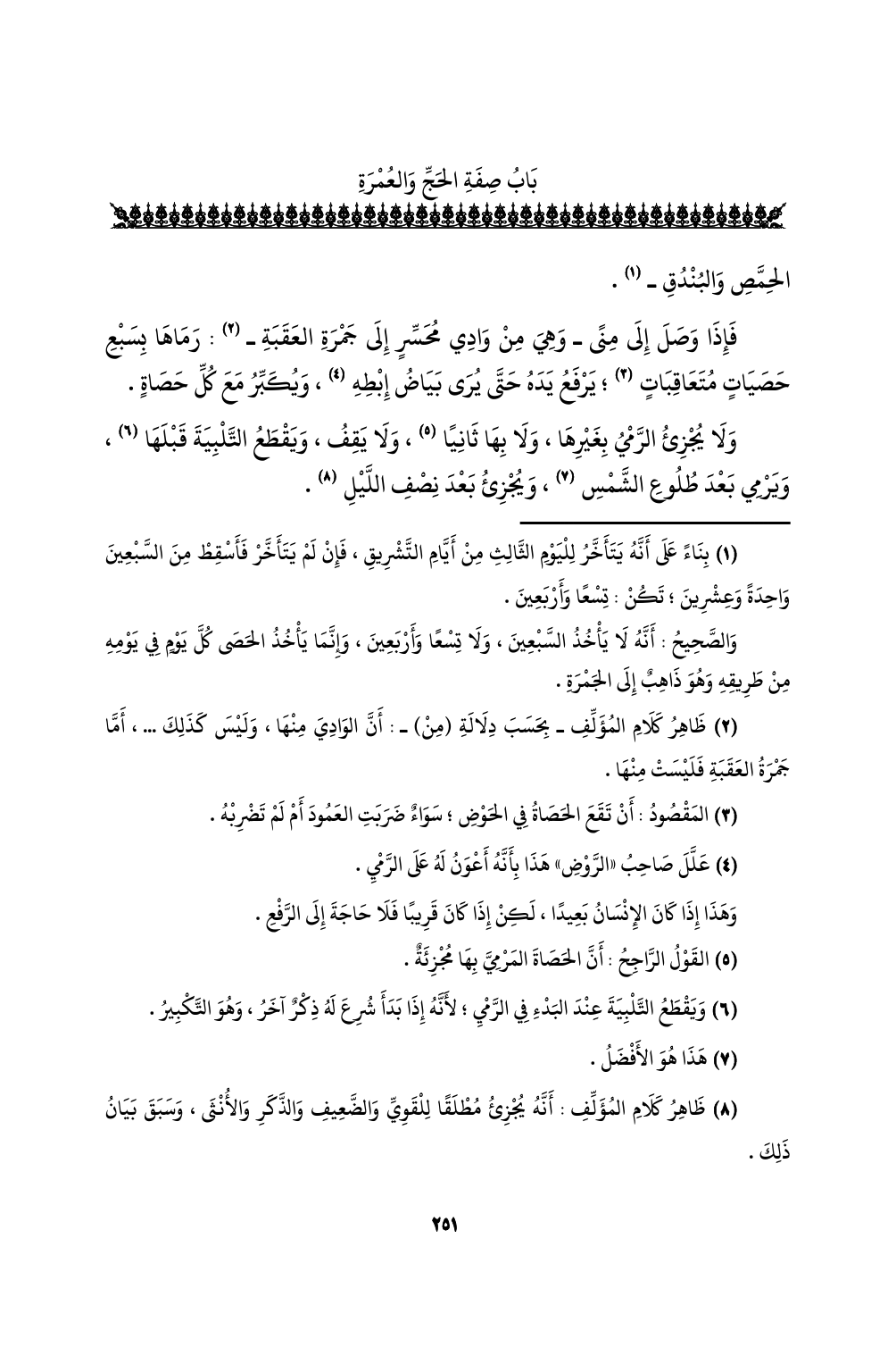 (¬1) بناءً على أنه يتأخر لليوم الثالث من أيام التشريق، فإن لم يتأخر فأسقط من السبعين واحدةً وعشرين؛ تكن: تسعًا وأربعين.