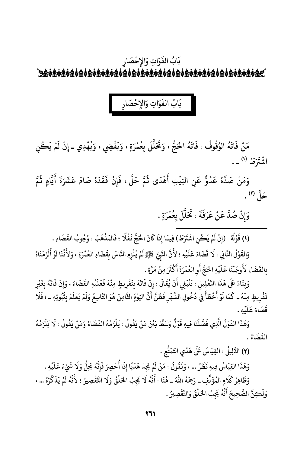 (¬1) قوله: (إن لم يكن اشترط) فيما إذا كان الحج نفلًا؛ فالمذهب: وجوب القضاء.