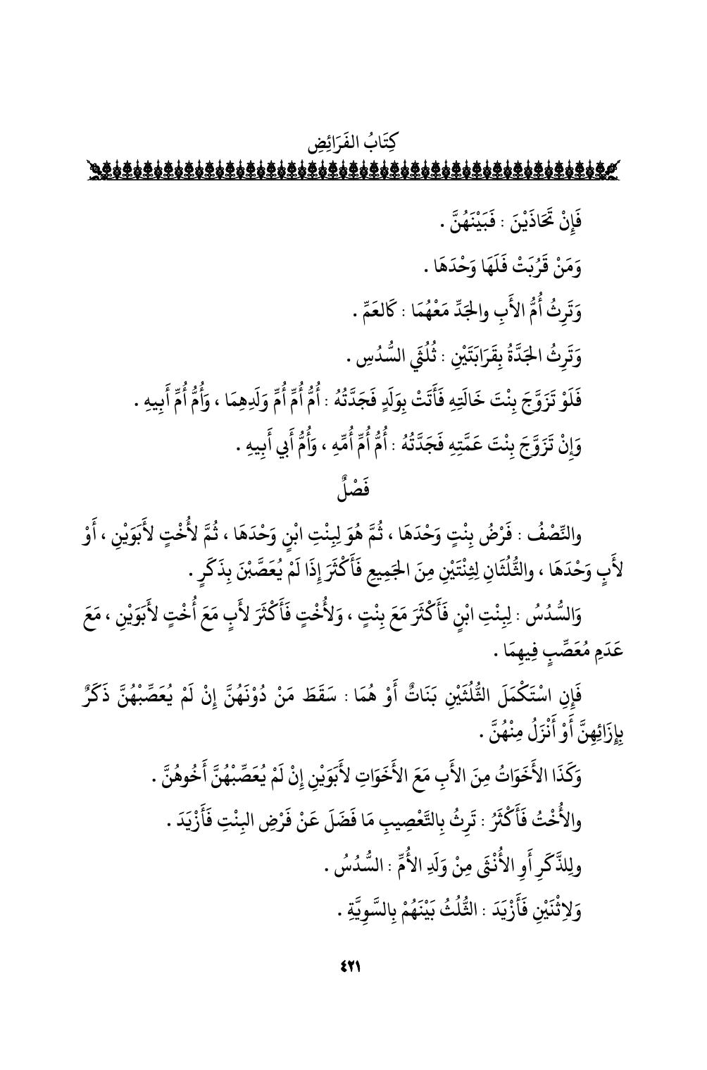 والنصف: فرض بنتٍ وحدها، ثم هو لبنت ابنٍ وحدها، ثم لأختٍ لأبوين، أو لأبٍ وحدها، والثلثان لثنتين من الجميع فأكثر إذا لم يعصبن بذكرٍ.